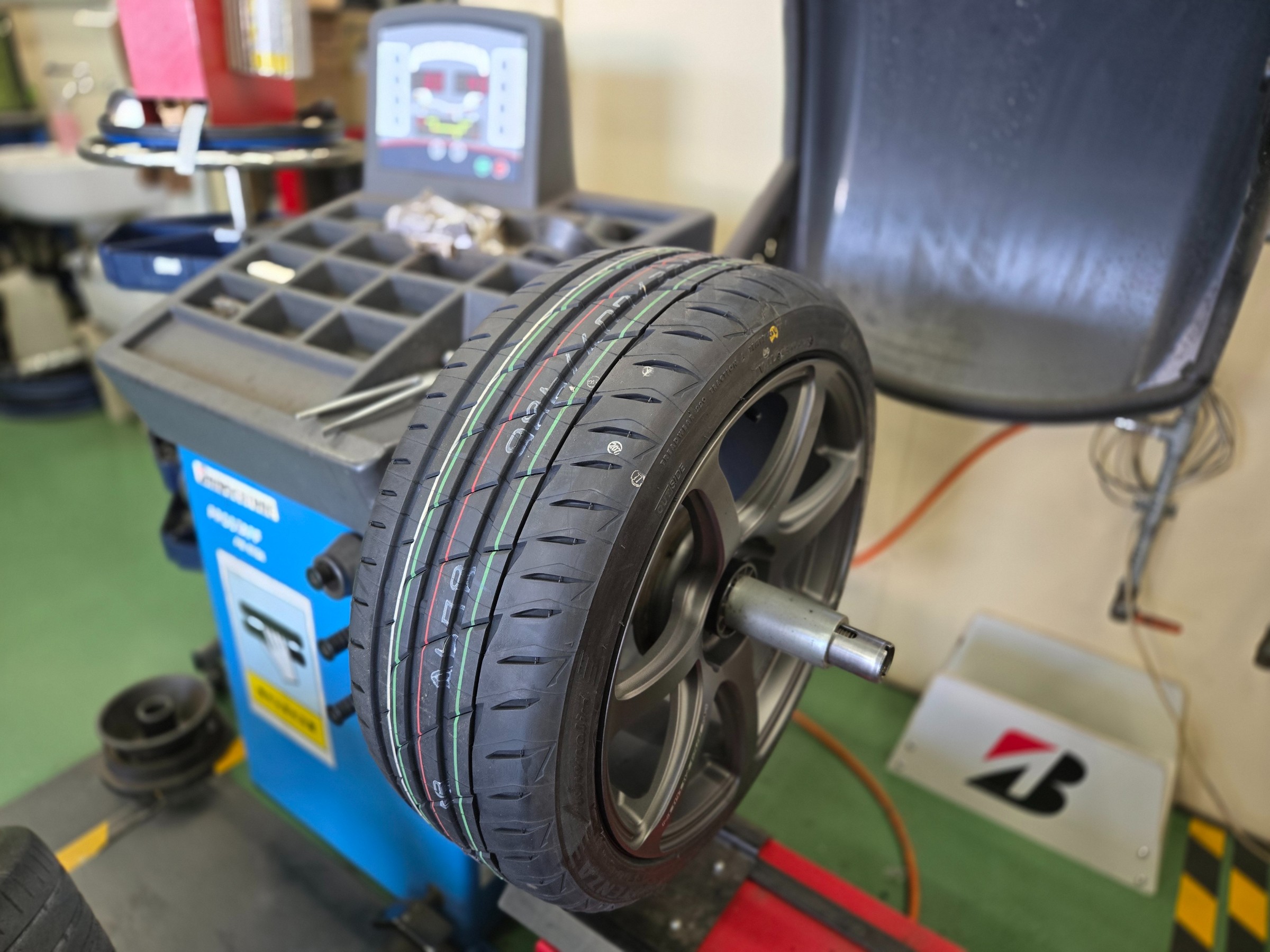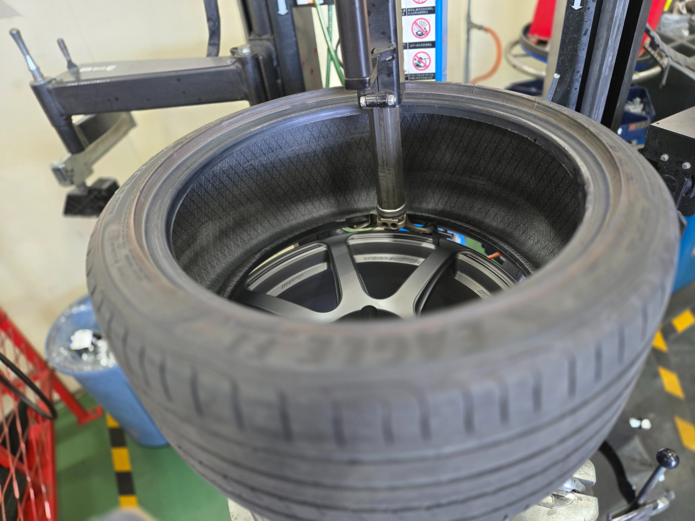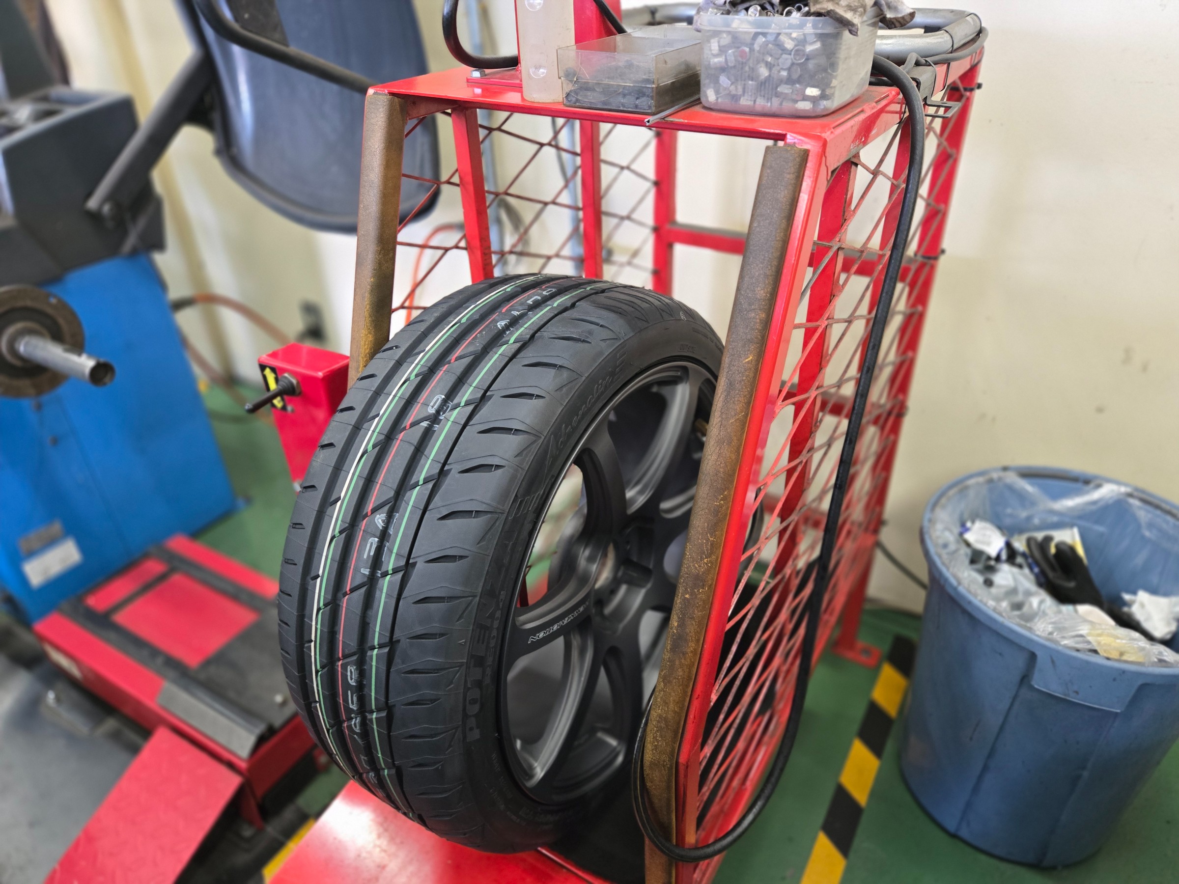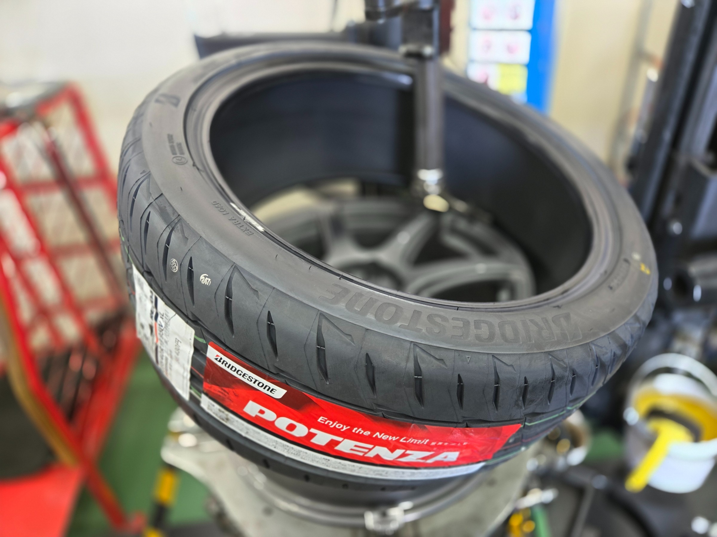 POTENZAは通常のタイヤより硬いので頑張って組みます(^^)