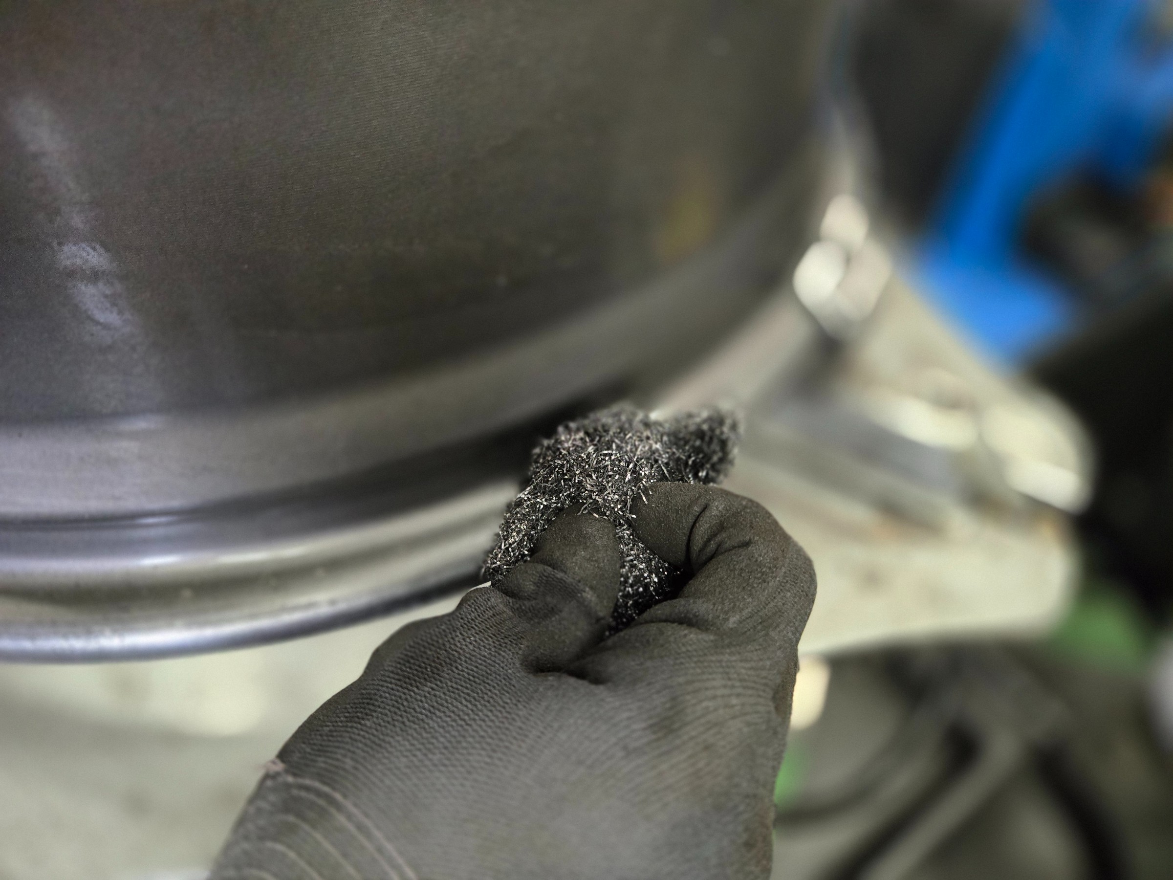 リム清掃をして組み込んだ時に空気が漏れないようにしていきます!