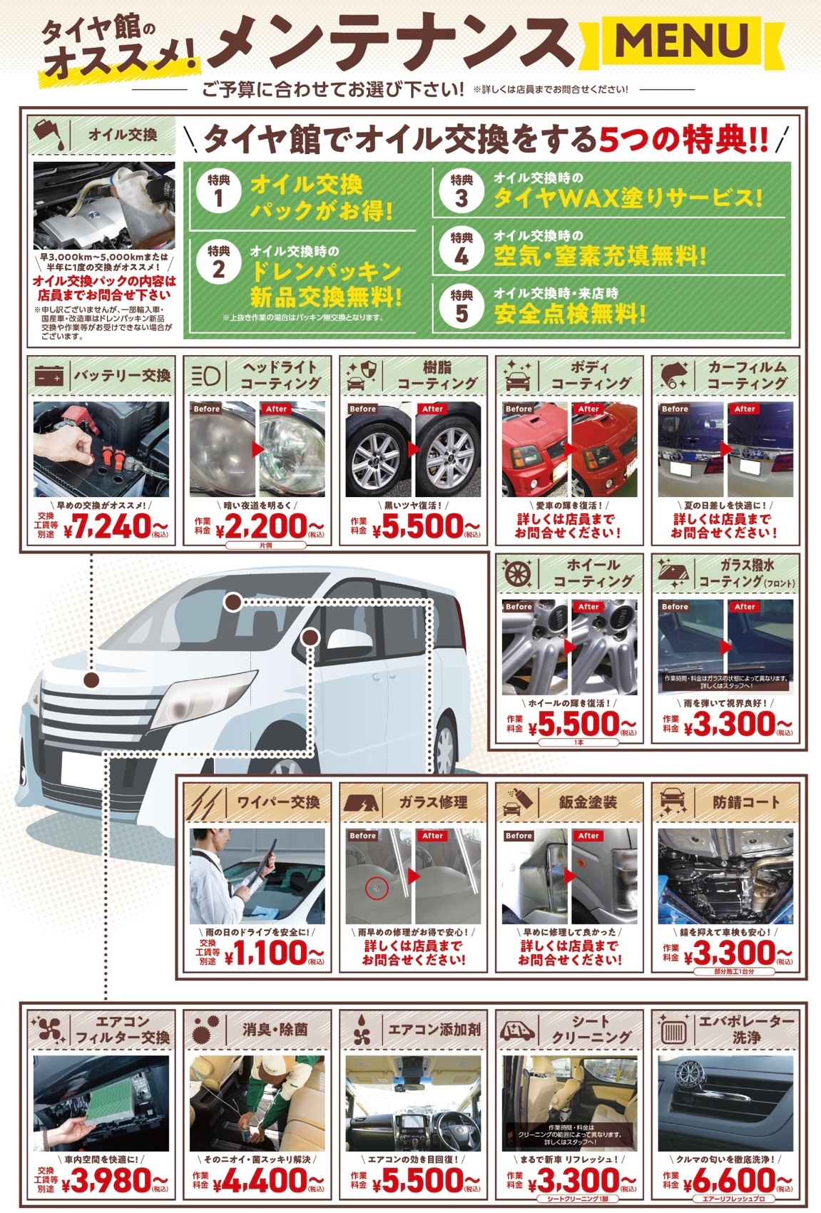 お車の各種メンテナンスサービスが