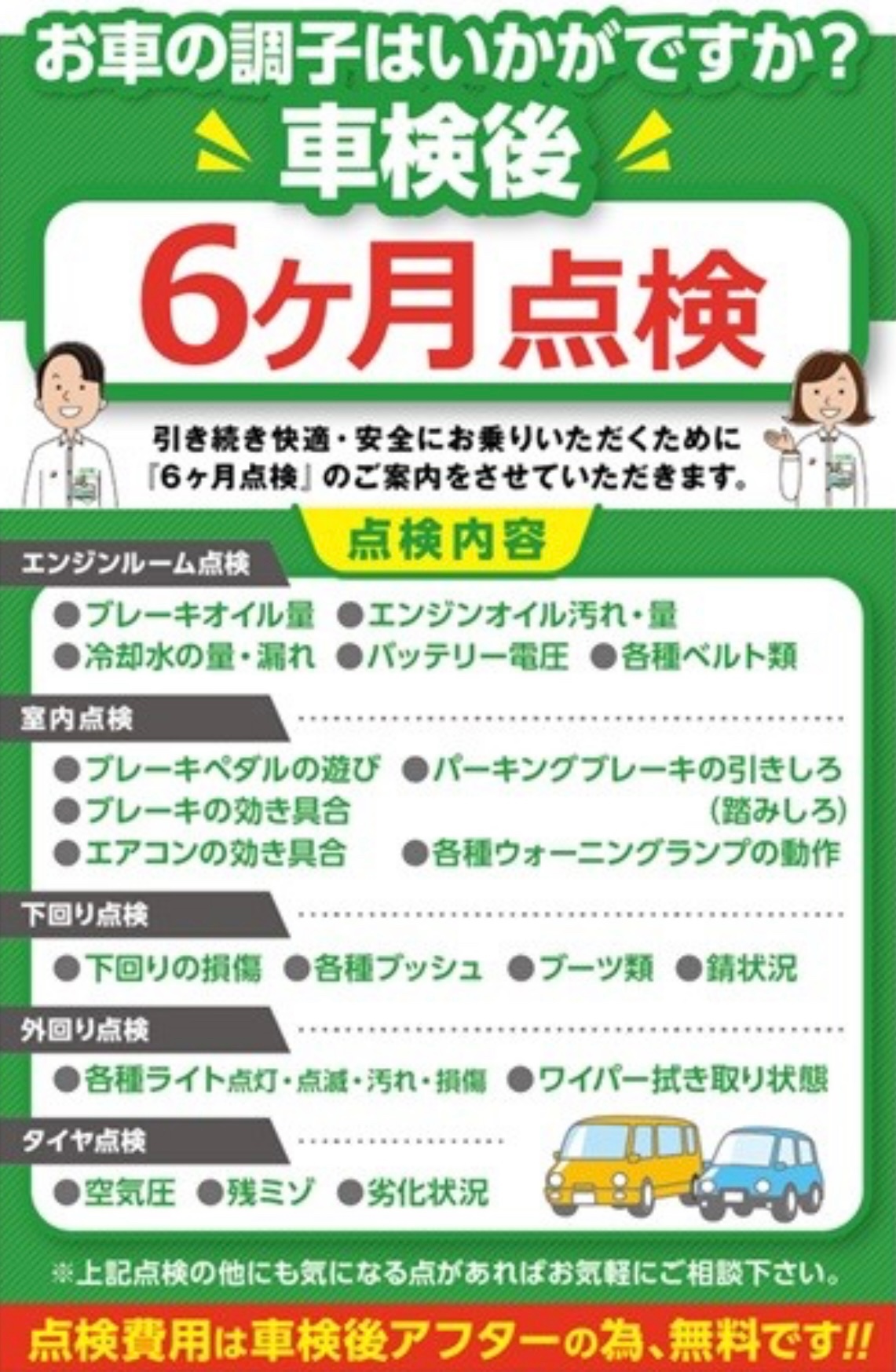 終わってから半年ごとに点検を行います!