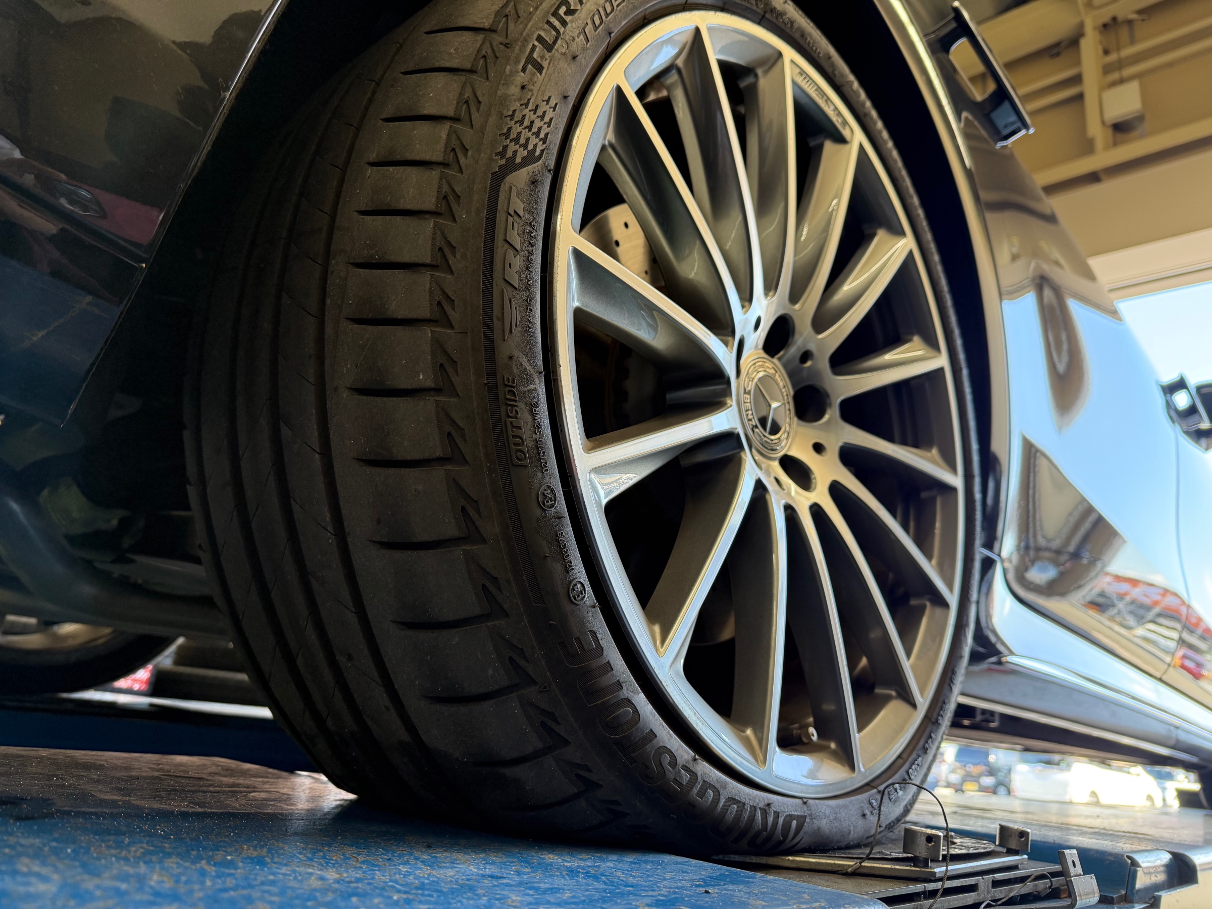 タイヤの内側要注意?!輸入車のタイヤ交換もお任せ下さい!メルセデスベンツSクラスのタイヤ交換!