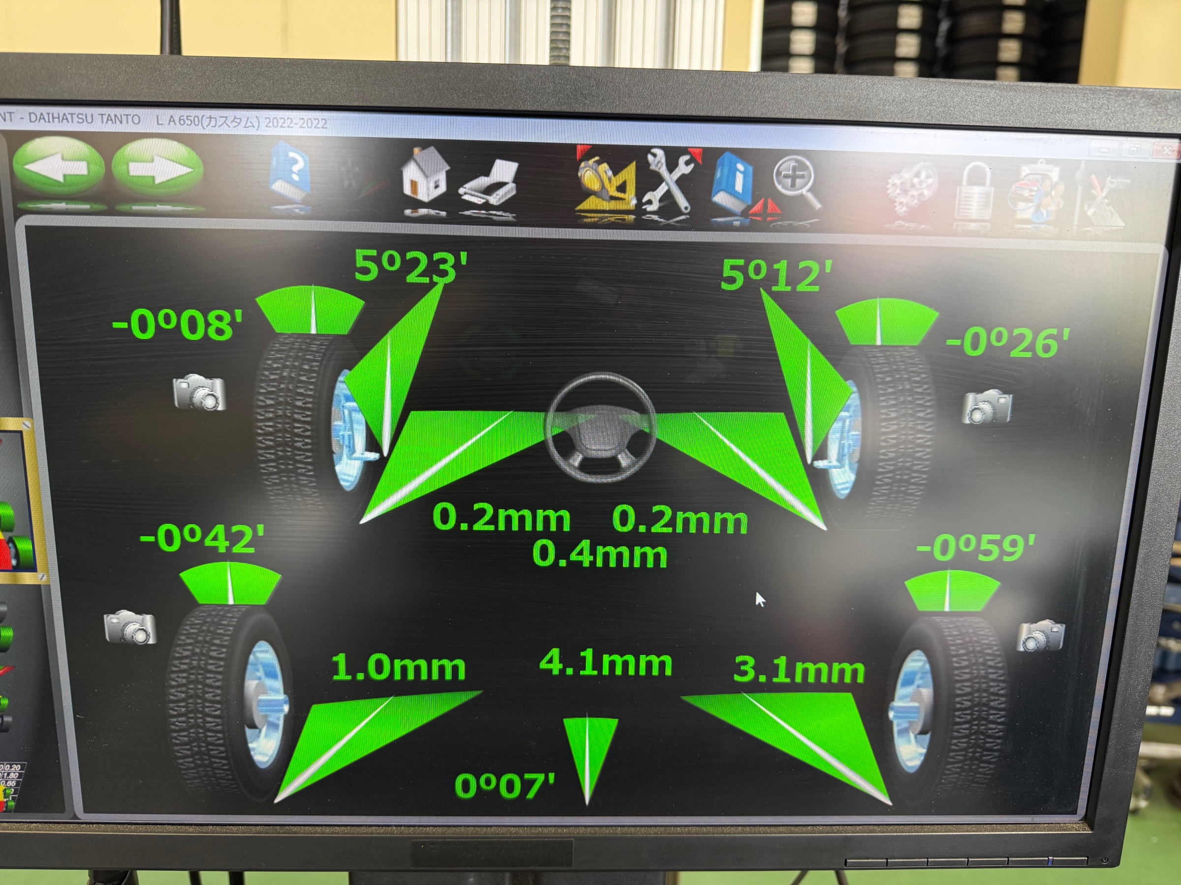 アライメント調整はタイヤ館にお任せ下さい!ダイハツ タント(LA650S)のアライメント調整!