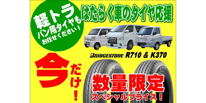 軽トラ、バンのタイヤもタイヤ館倉敷大島店にお任せください!数量限定セール中ですよ!!