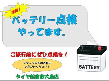【お問い合わせ急増中】お車のバッテリーは大丈夫ですか?バッテリーの点検も交換もタイヤ館倉敷大島店にお任せください☆