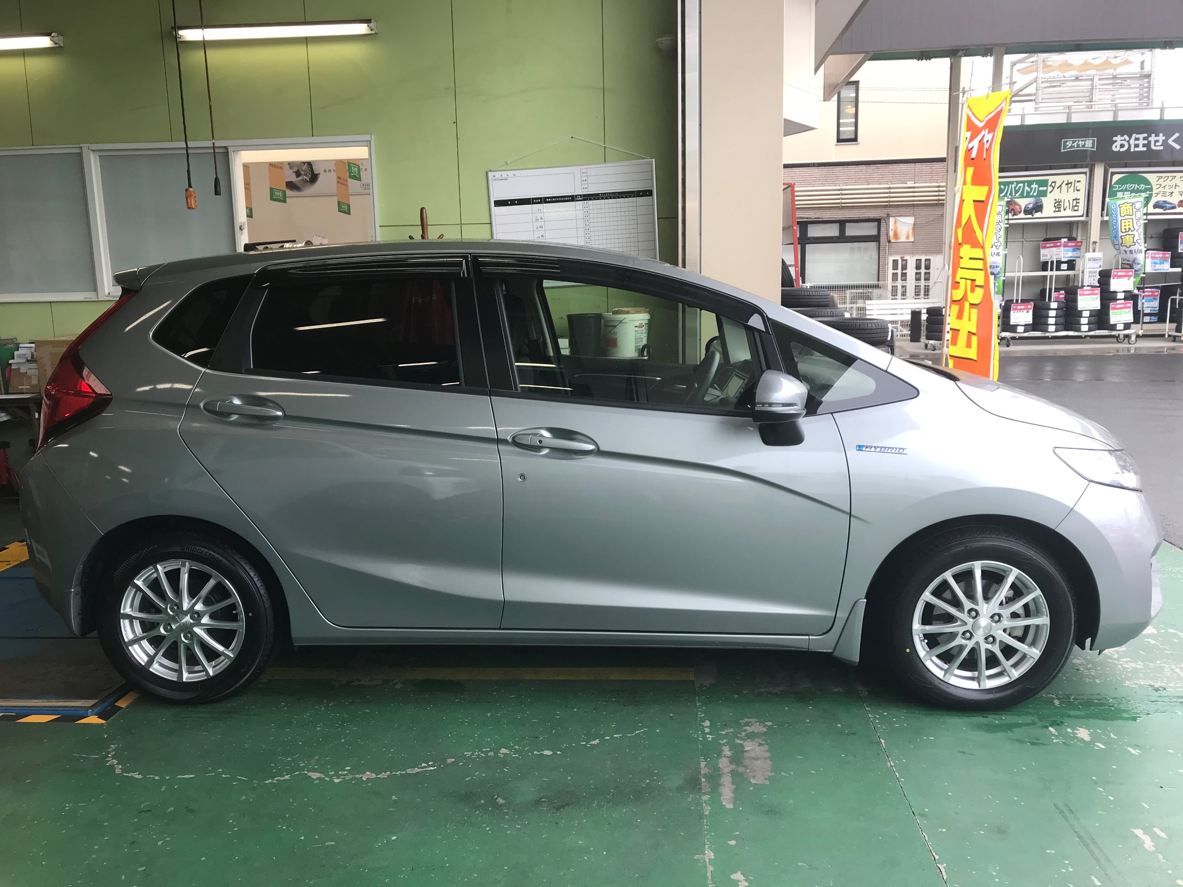 今回は、こちらのホンダ フィットにタイヤ・ホイールセットの取り付け事例を紹介します。