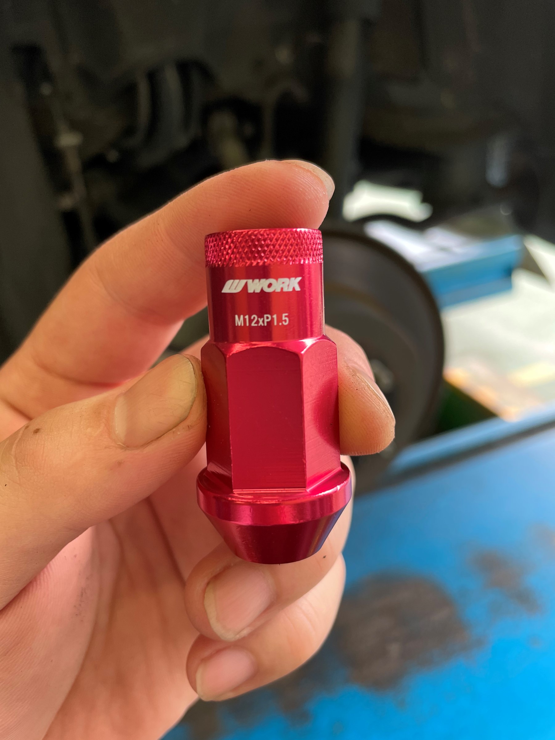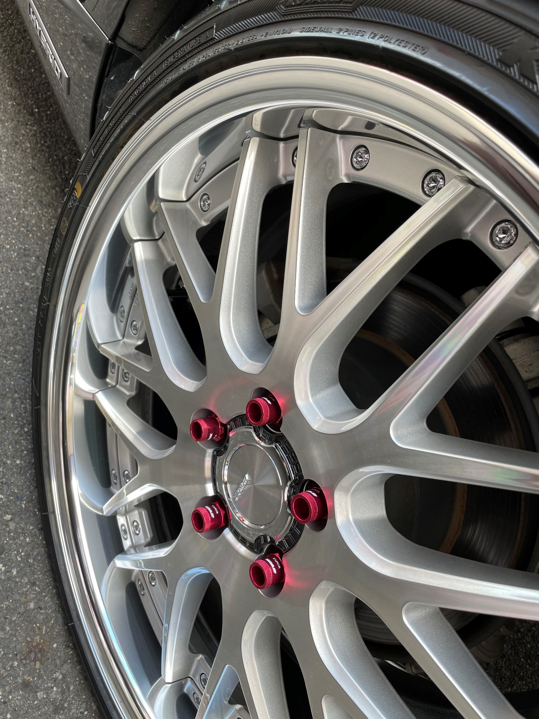シルバーのアルミホイールにワンポイントでナットのREDカラーが映えます!