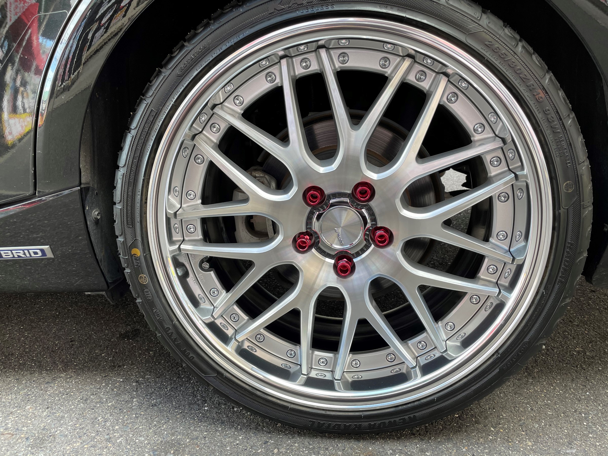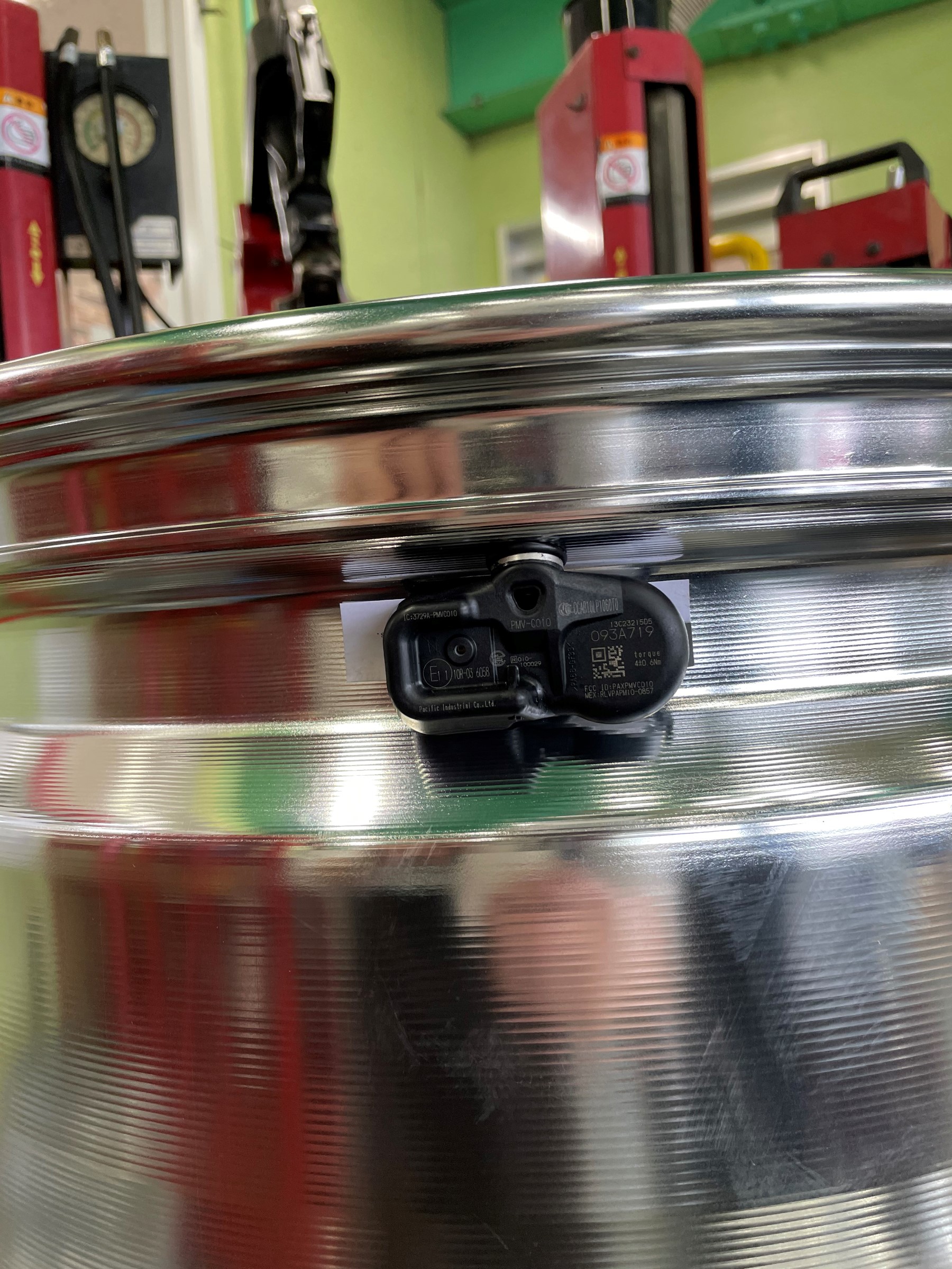 お車にはもともとTPMS(空気圧センサー)が装着されていましたので、TPMS用にホイールを特殊加工をして装着できるようにしてもらいました!