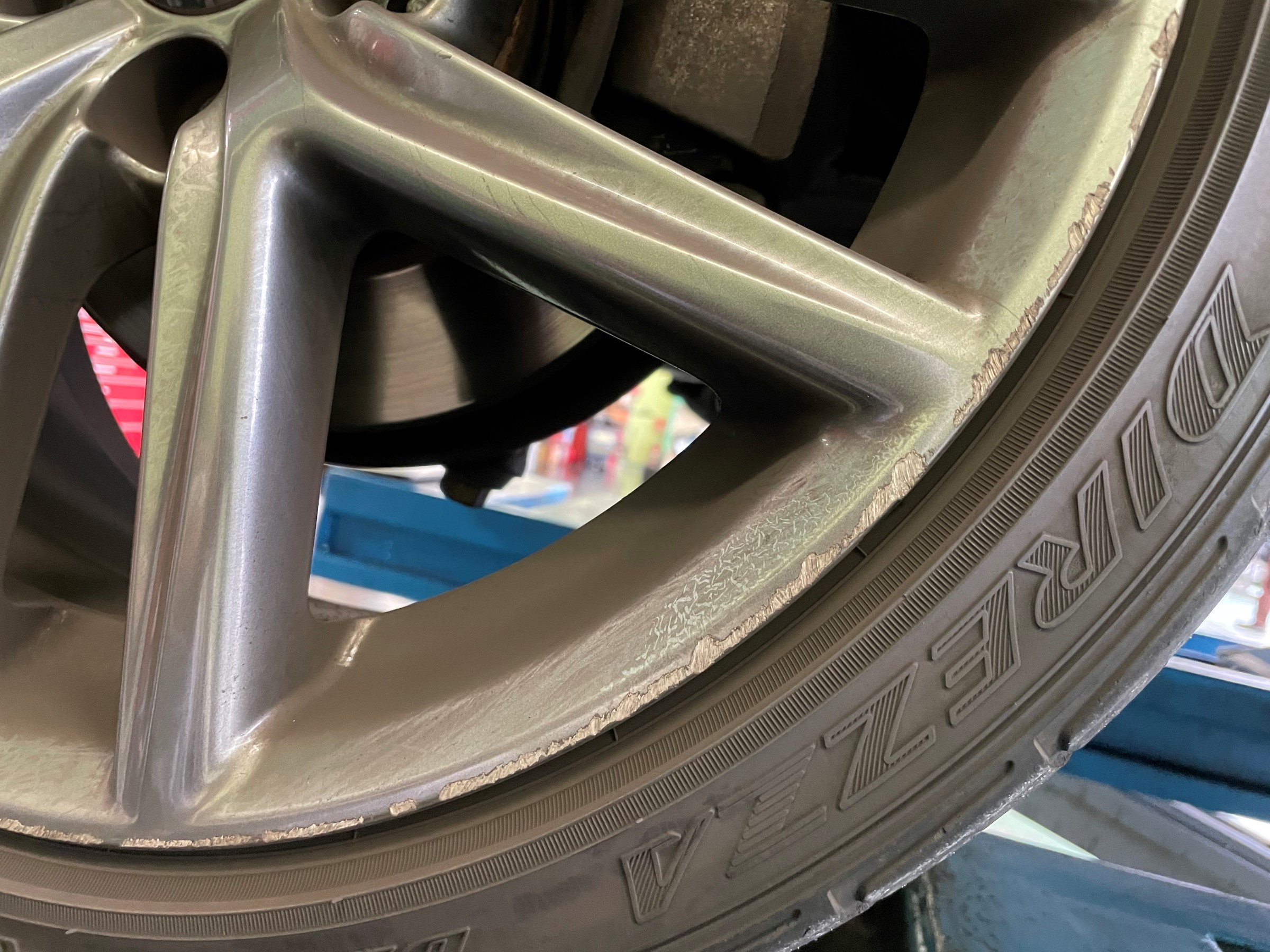 純正ホイールはこすったりした跡があったので、アライメント調整を行います!