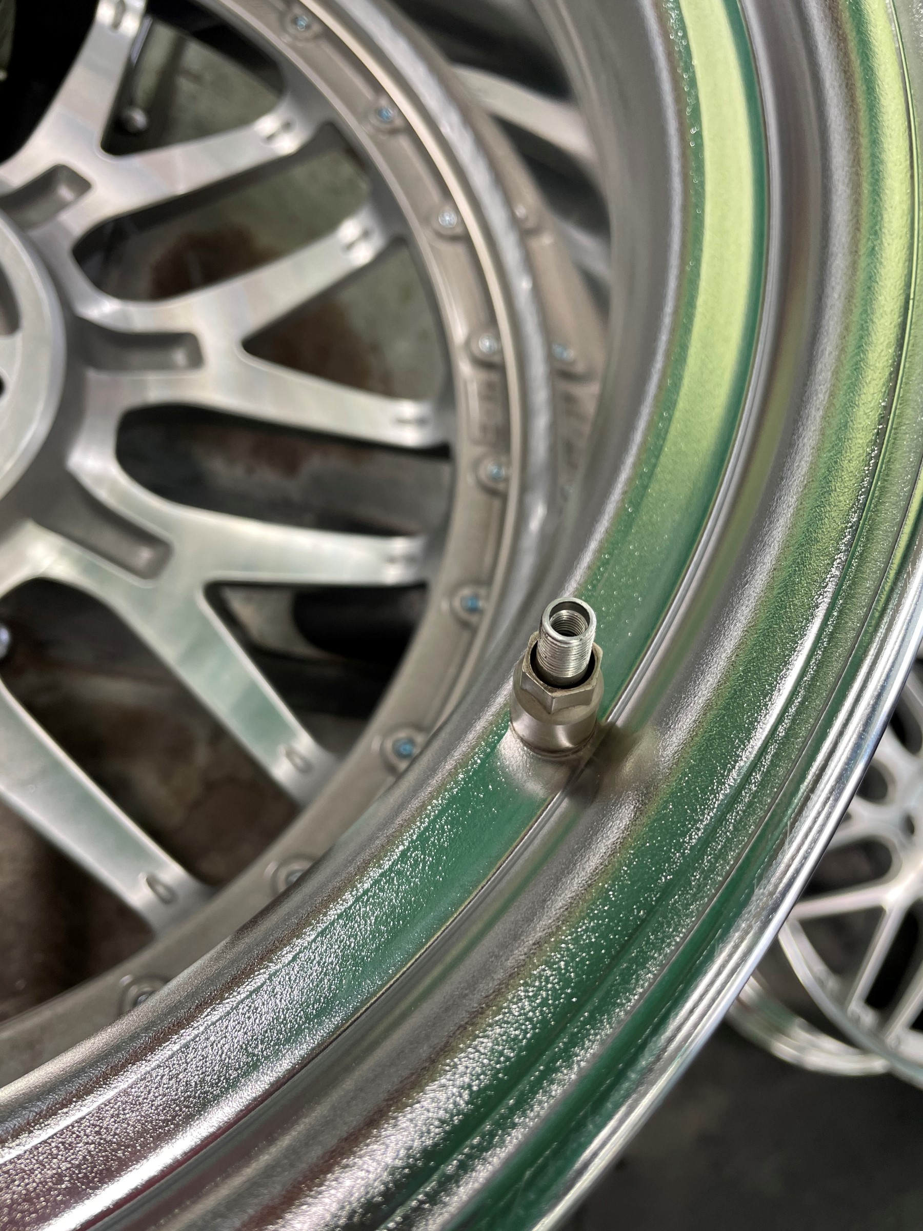 純正のバルブとは別にリムの裏にTPMS装着用の加工がしてあります。