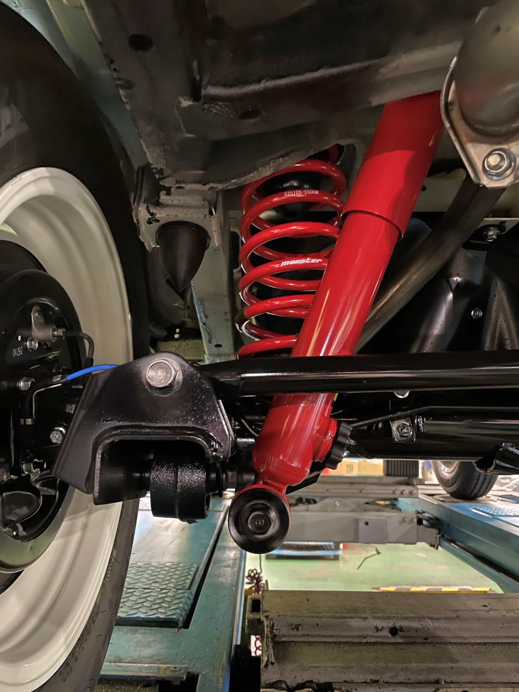 リアも同様にアップスプリングとショックアブソーバーに交換しました。