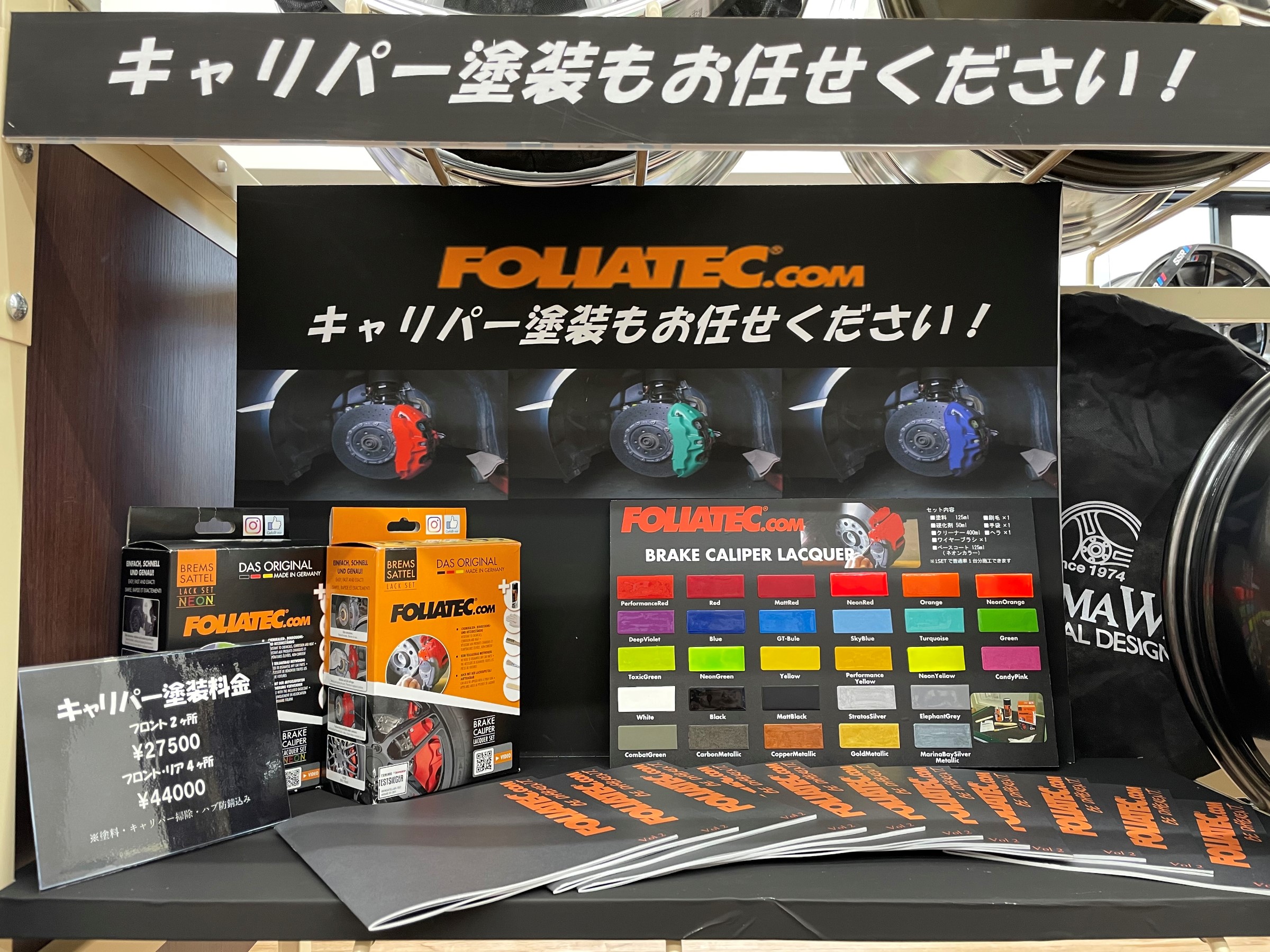 当店大人気のブレーキキャリパー塗装ですが、色味がよく分からなかったり、どれだけ種類があるのかなどのお問い合わせも多かったのでカラーサンプルを用意しました!