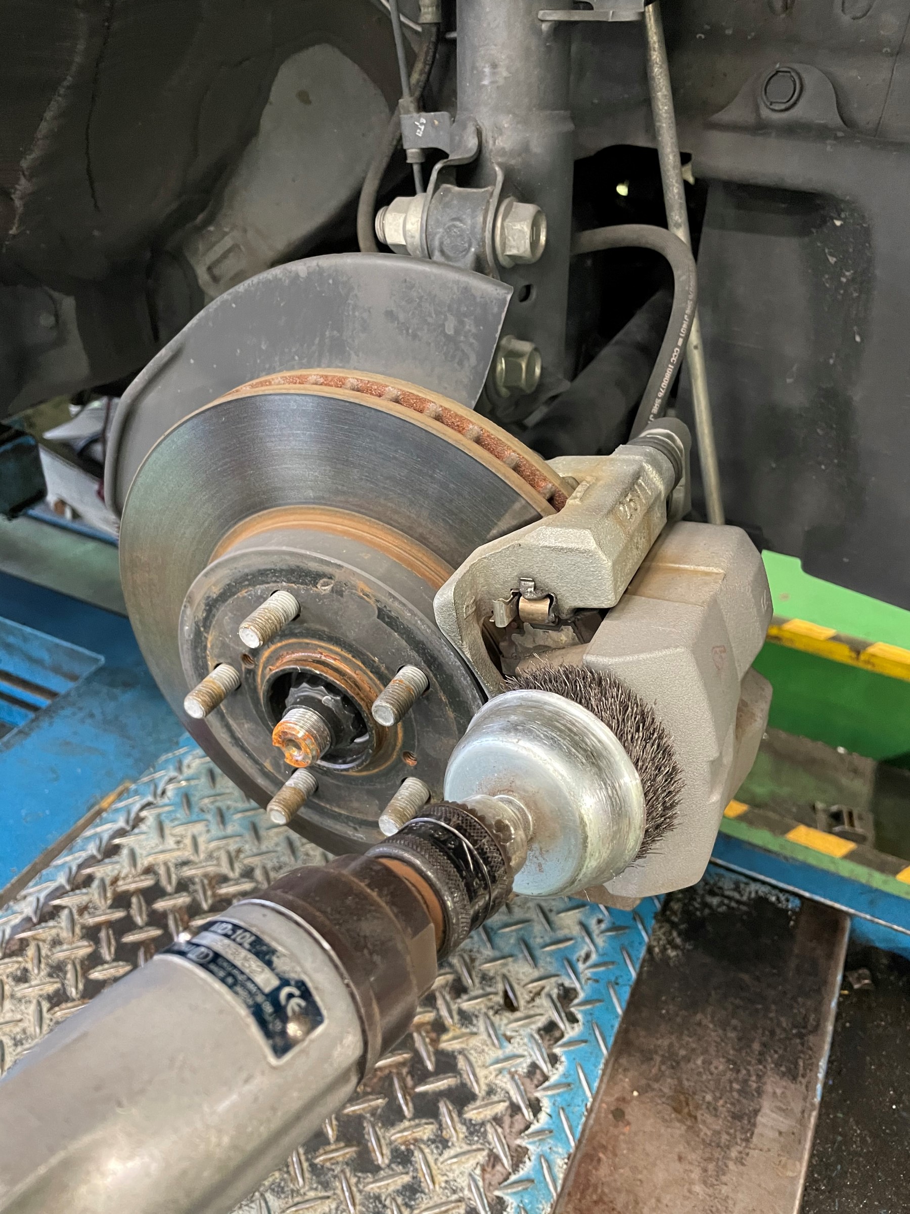 こちらをワイヤーブラシやブレーキパーツクリーナー等を使用して掃除します。
