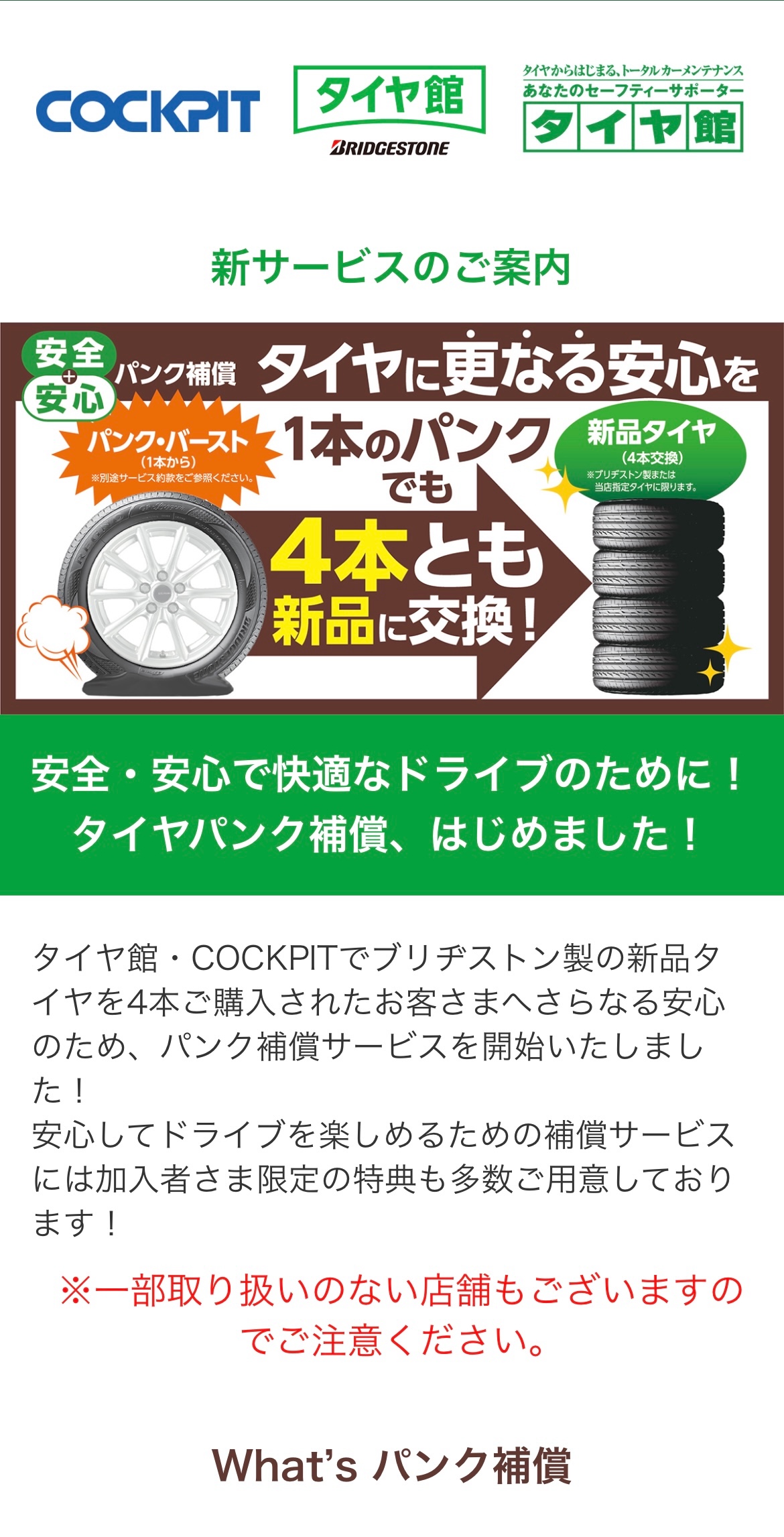 タイヤ館でタイヤを購入した際は是非パンク補償もご加入ください!