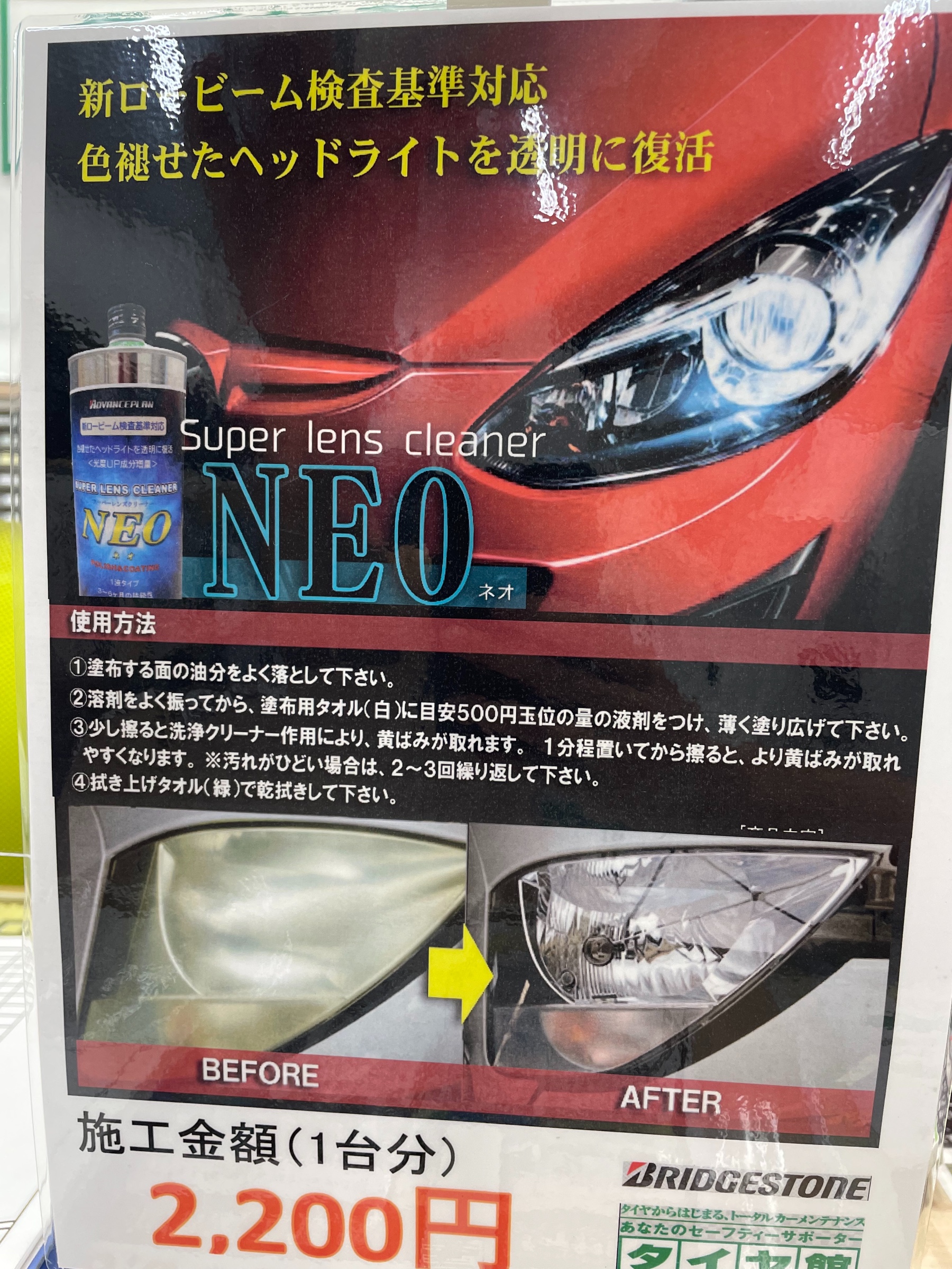 タイヤ館ではそんなヘッドライトを短時間で安くコーティングできます!