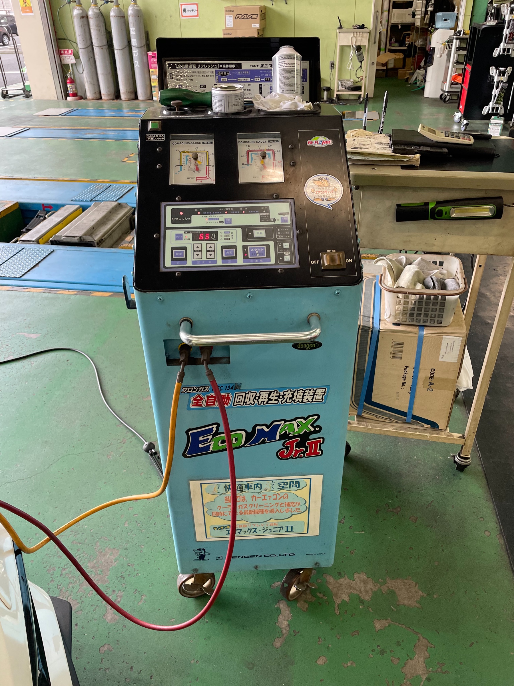 車に繋いでガスの量を測って、適正な量を水分を抜いてから戻します!