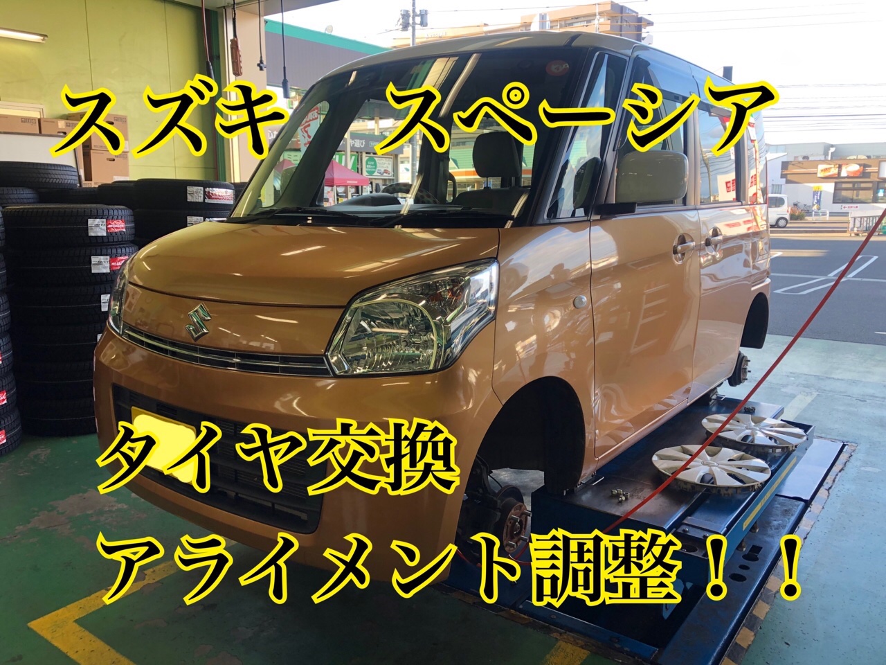 スズキスペーシアのタイヤ交換アライメント調整!