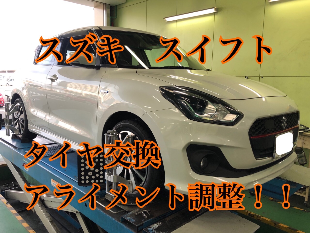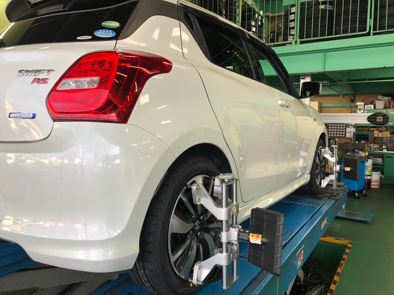 スズキ スイフトのタイヤ交換、アライメント調整!