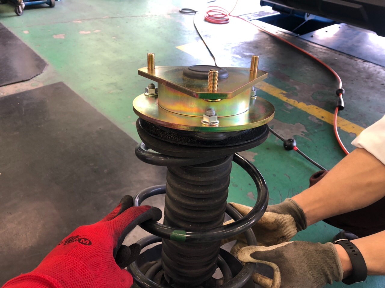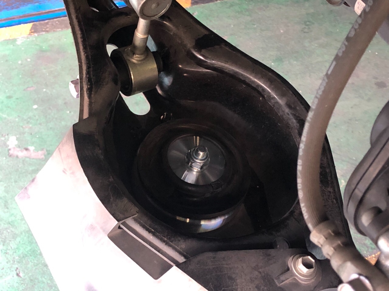 フロントはまず足を外してやって純正サスの頭に