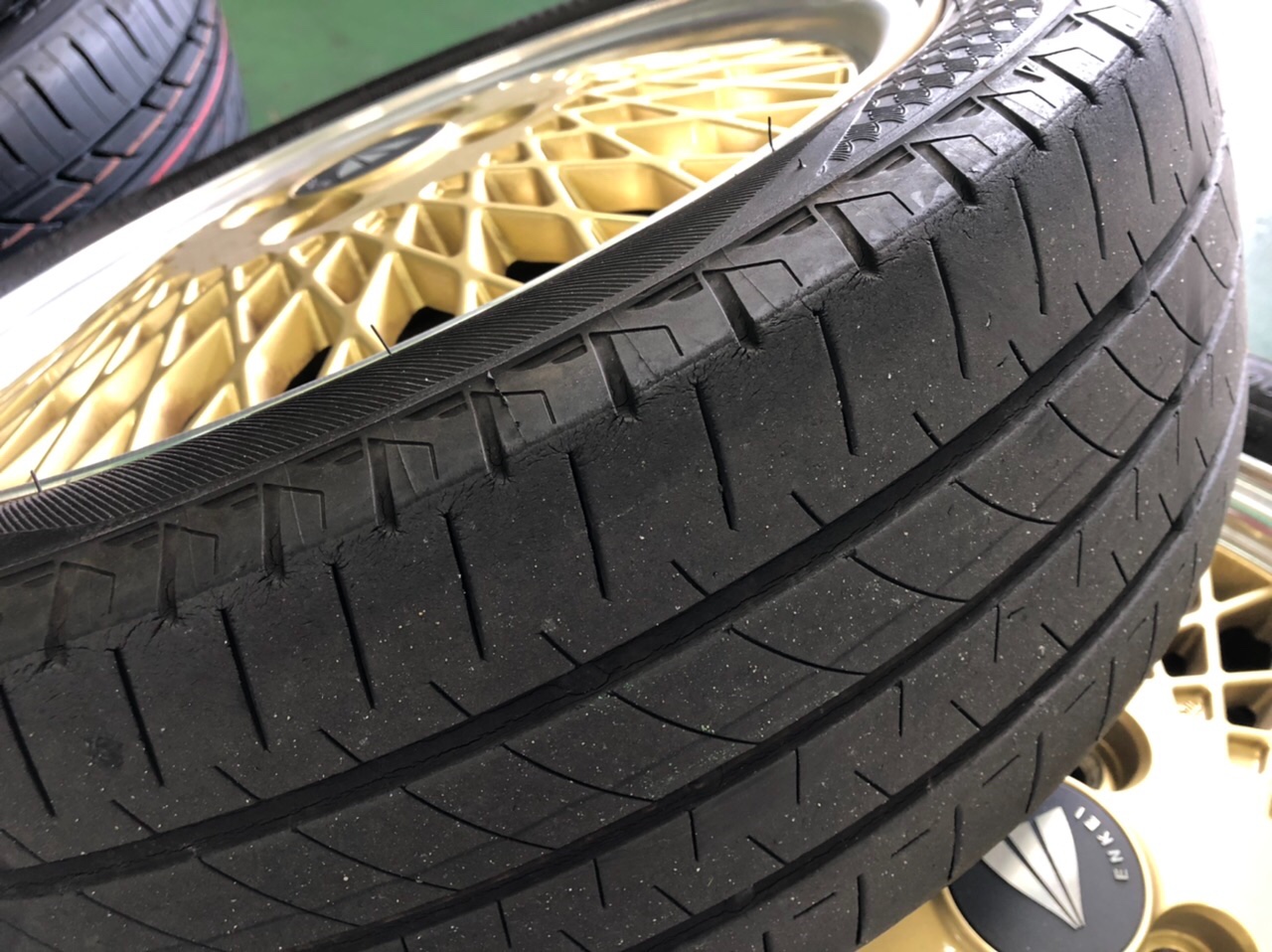 また年数劣化によりヒビの入ったタイヤも