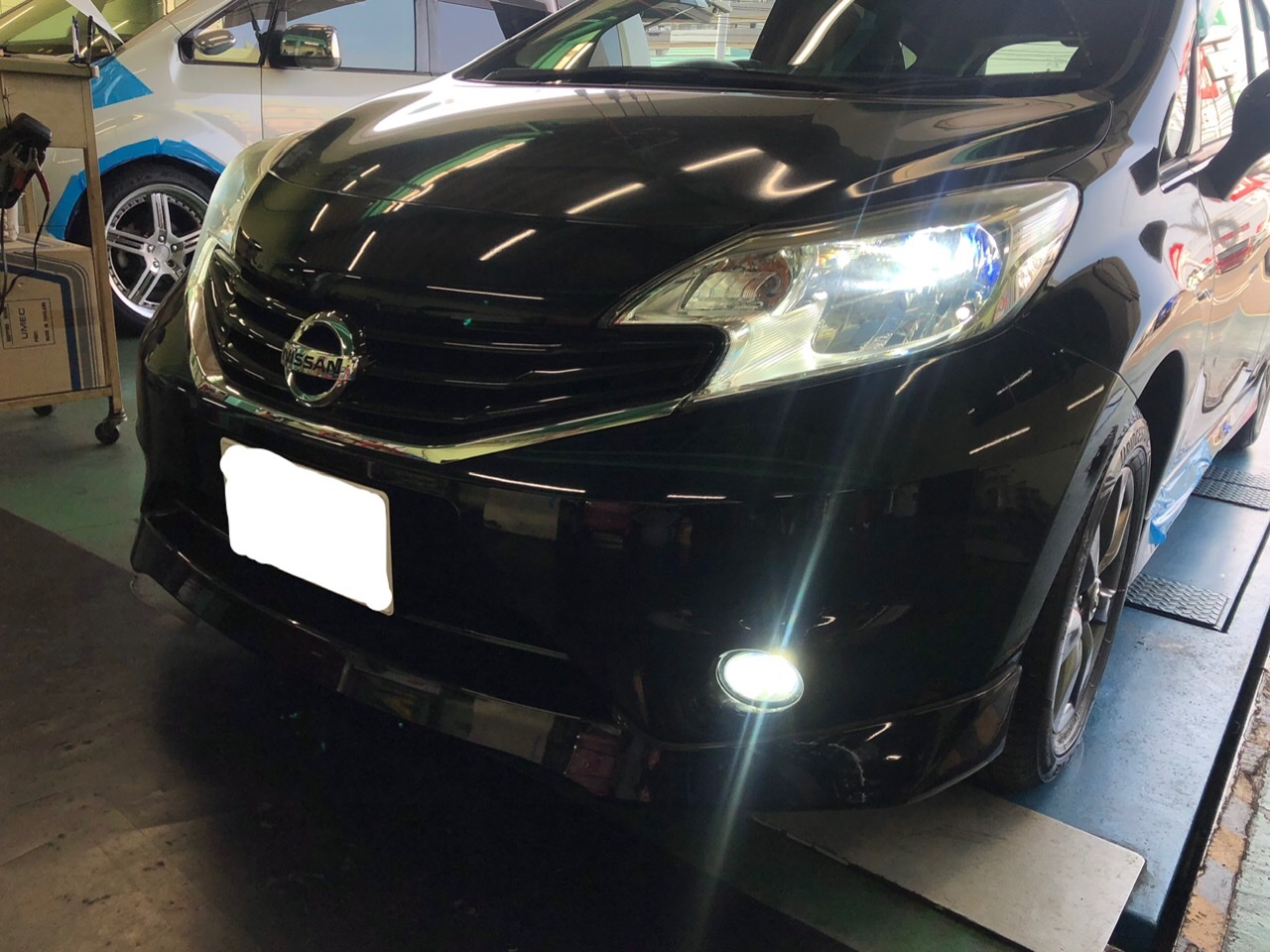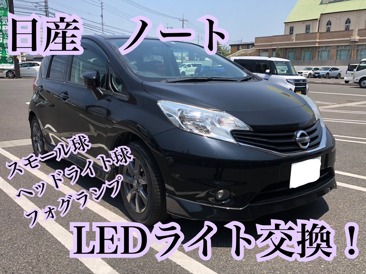 日産 ノートのスモール、ヘッドライト、フォグのLED球交換!