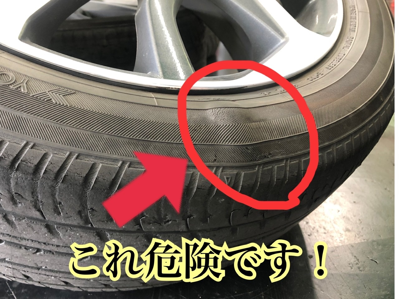 タイヤの一部が盛り上がったり、タイヤが捲れたり
