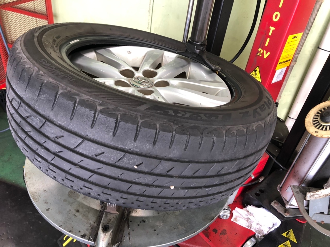 まずは古いタイヤをホイールからバラしていきます!