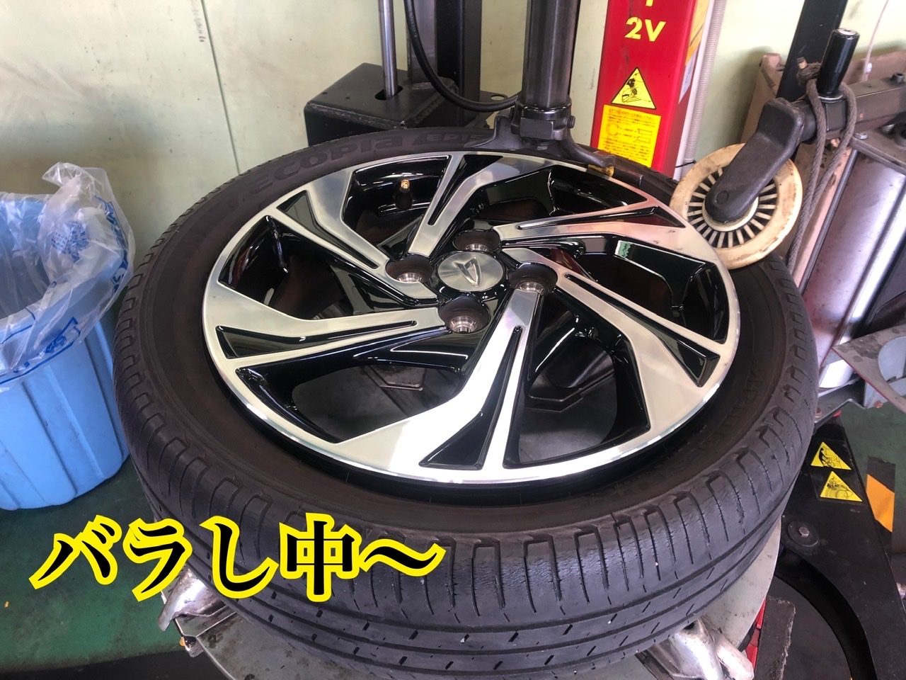 まずは古いタイヤをホイールからバラしていきます!