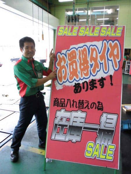 看板の通り、在庫一掃セール開催中です!!