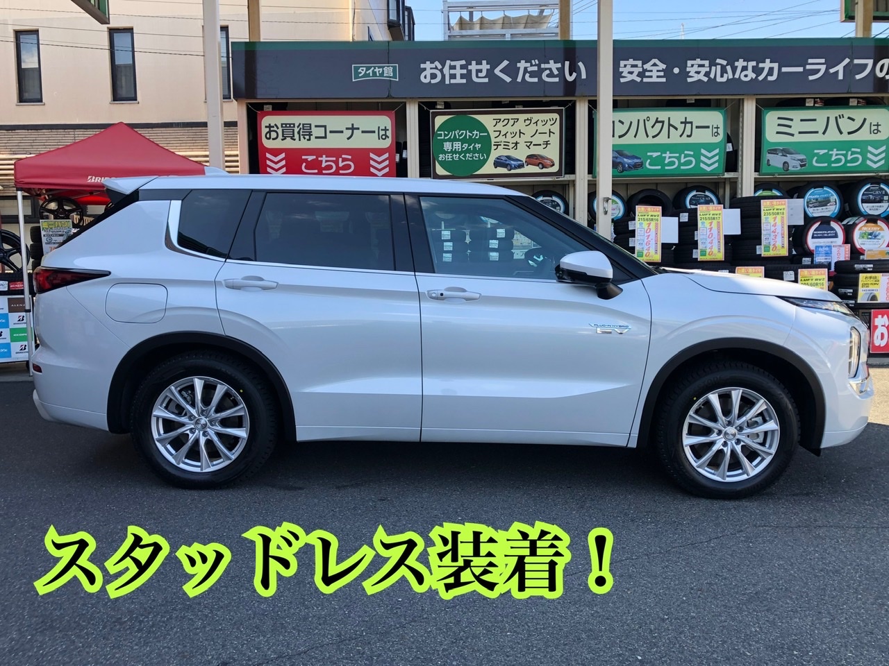 三菱 アウトランダーPHEVにスタッドレスタイヤ装着!