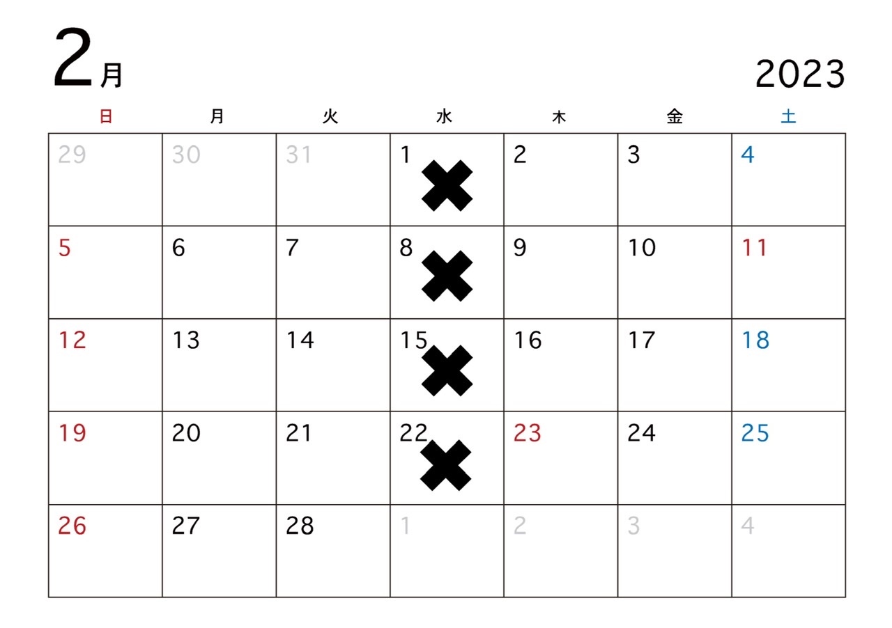 【2月定休日のお知らせ】