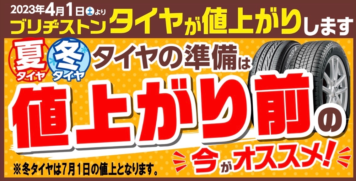 タイヤをご検討の方は値上げ前の購入がお得です!