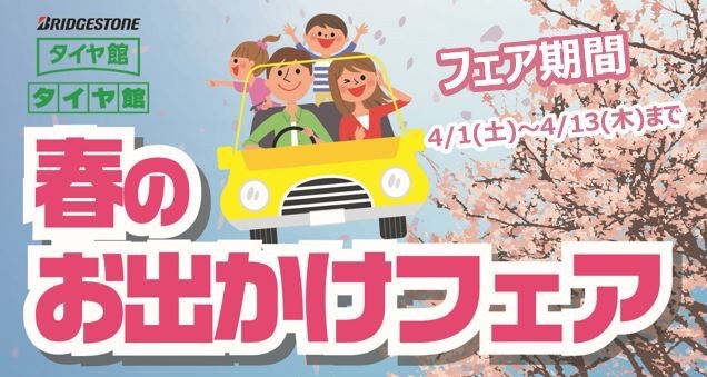 タイヤ館ではゴールデンウィーク前に春のお出かけフェアをしております。