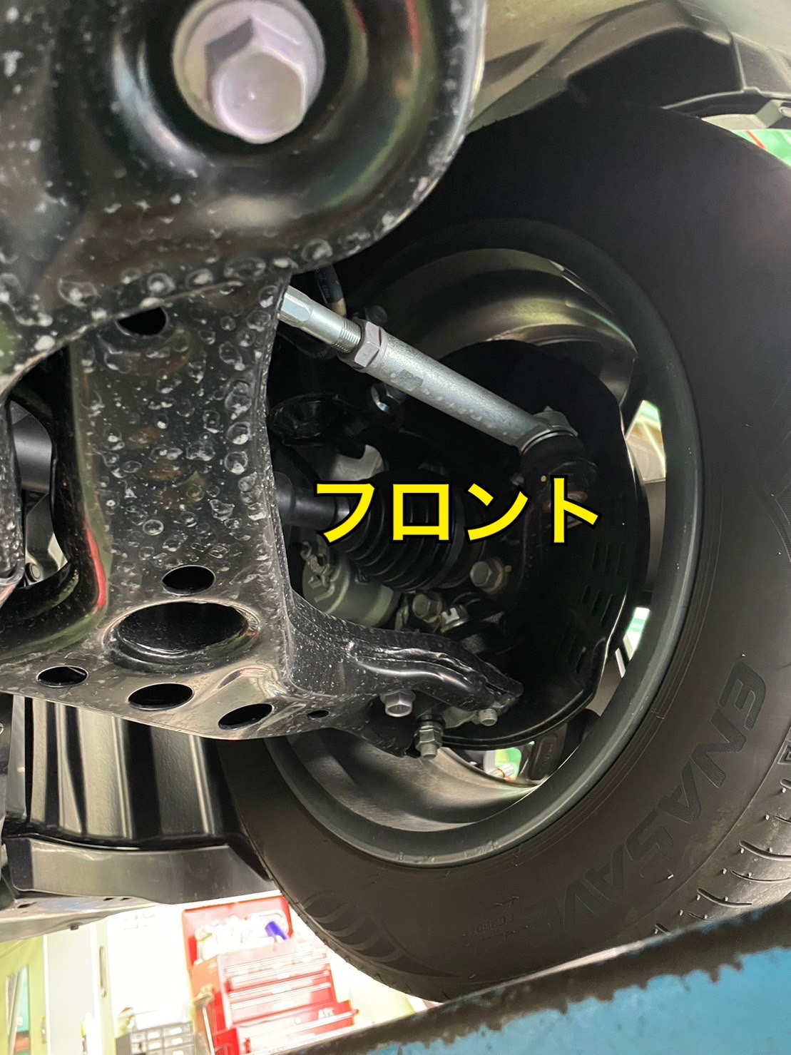 今回のお車も走行距離が1000キロ程で実際に車体が少し左に傾いて進んでいる状態でした。