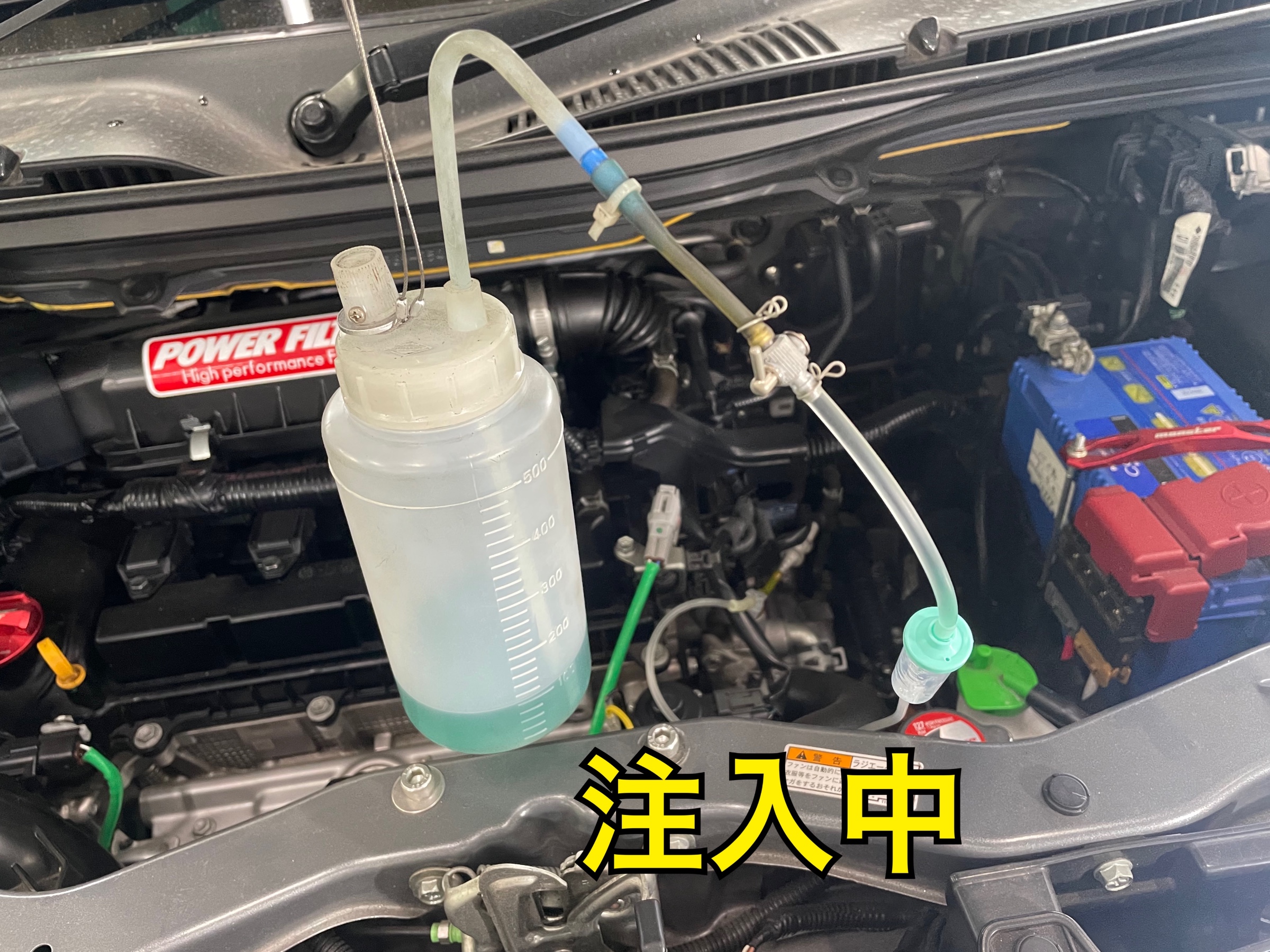 30分くらいかけてゆっくり入れきったら最後にエンジンを吹かして汚れを吐き出していきます。