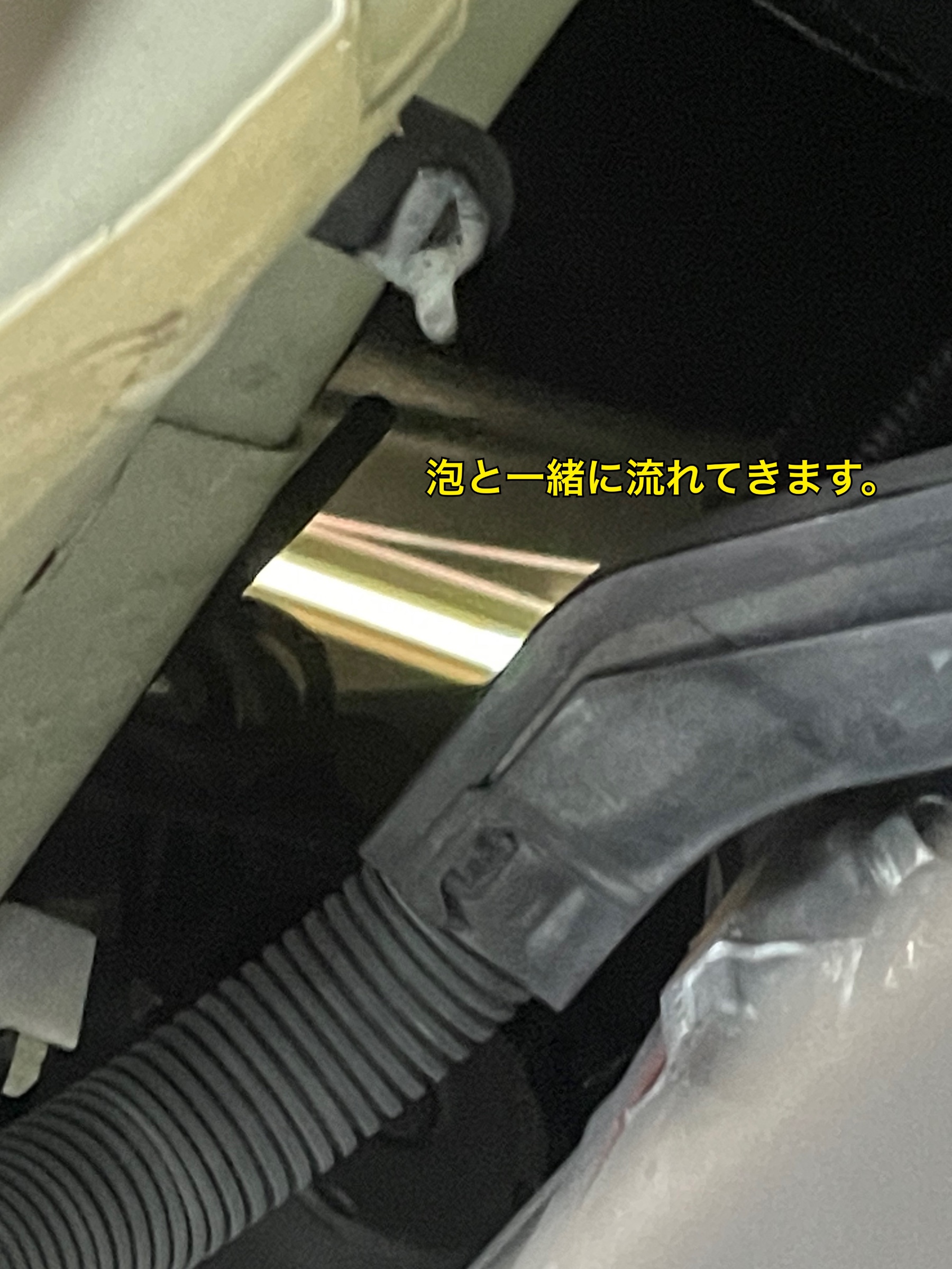 エバポレーター洗浄は排水口から泡状の洗浄剤を送り込んで、泡が割れる力を使って汚れをこそぎ落として行きます。