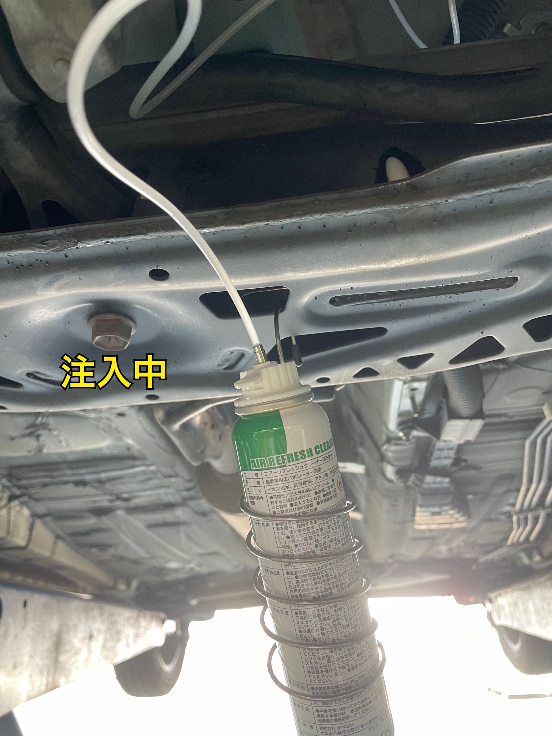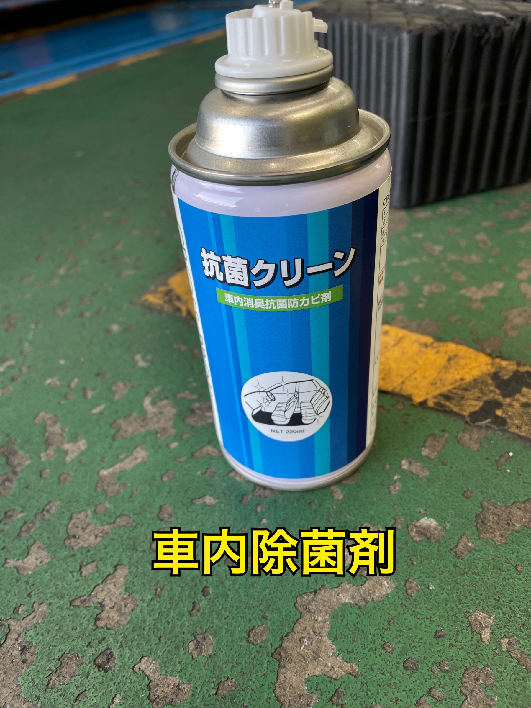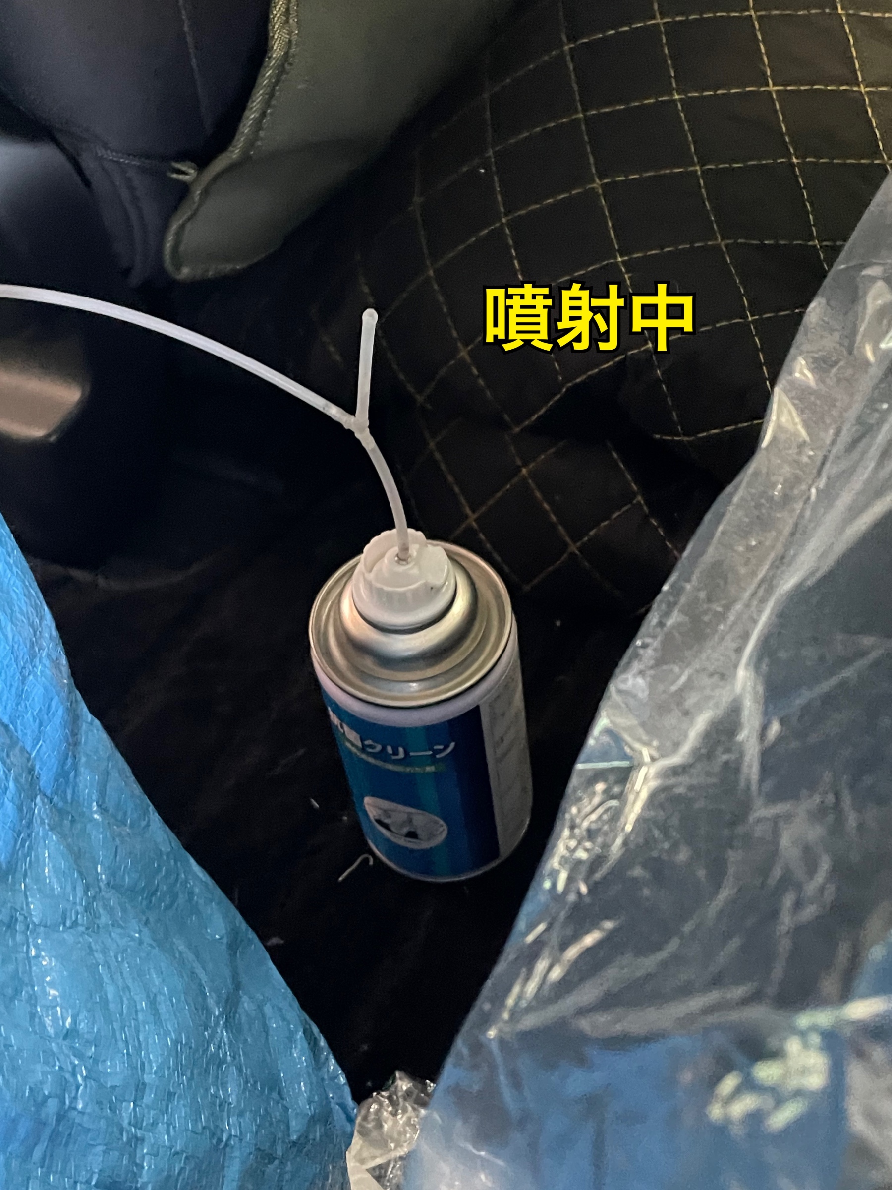 次に本体を後部座席の足元に置いて、抗菌剤を噴射します。