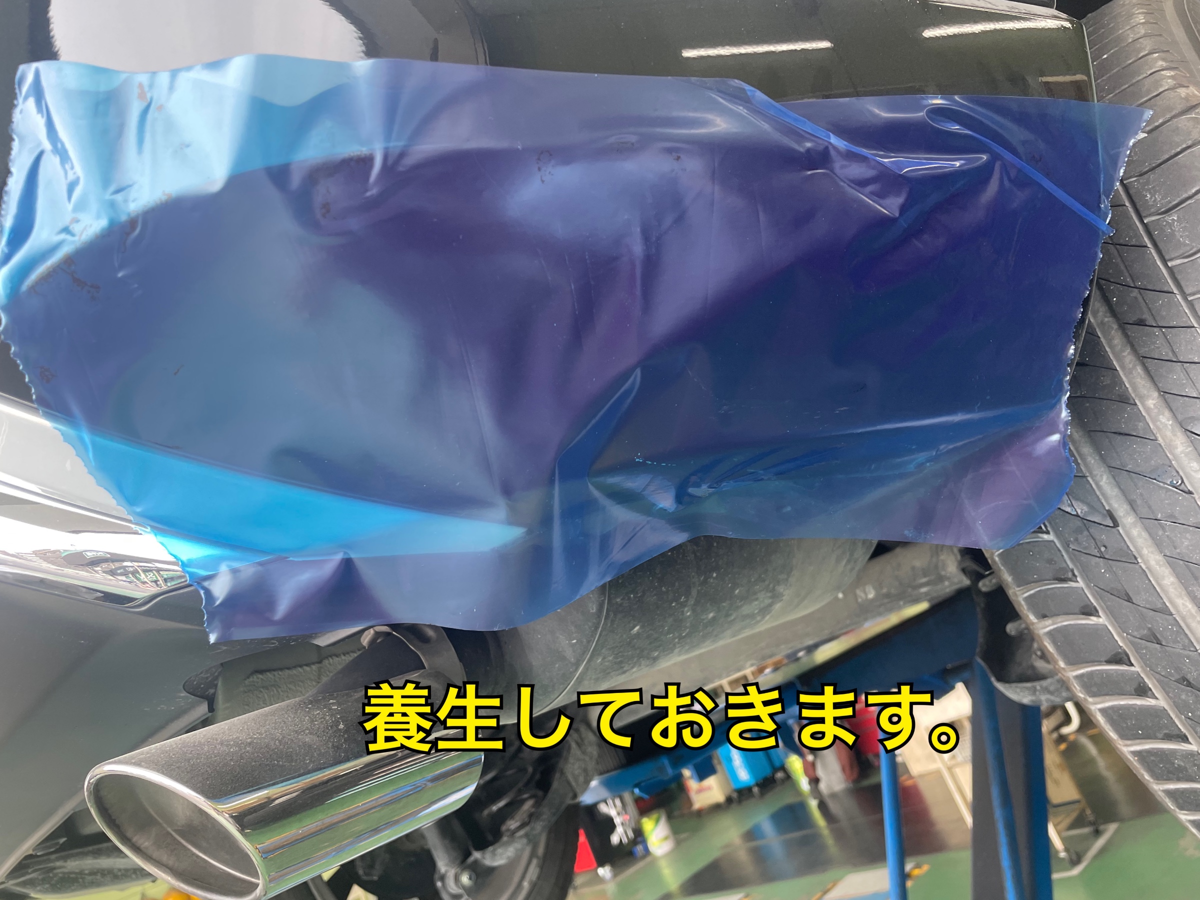 外す前に車体に養生をしておきます。