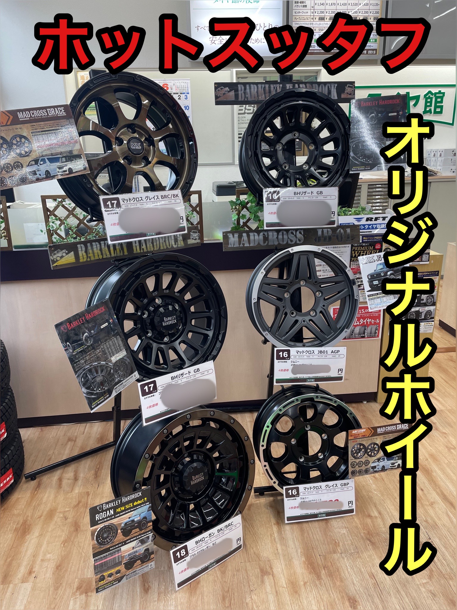 まだまだホイールフェア開催中! ポスト 2023年6月20日 いつもタイヤ館倉敷大島をご利用して頂き有難うございます。 ただいまタイヤ館倉敷大島ではホイールフェアを開催中です! 期間は5/20〜6/30までで、期間内にご契約して頂くとナットをプレゼント致します。 今回はホットスタッフのオリジナルホイールの展示です! 普段見れないホイールが沢山展示されますので、是非遊びにきてください! WEB予約はコチラから! 担当:平野
