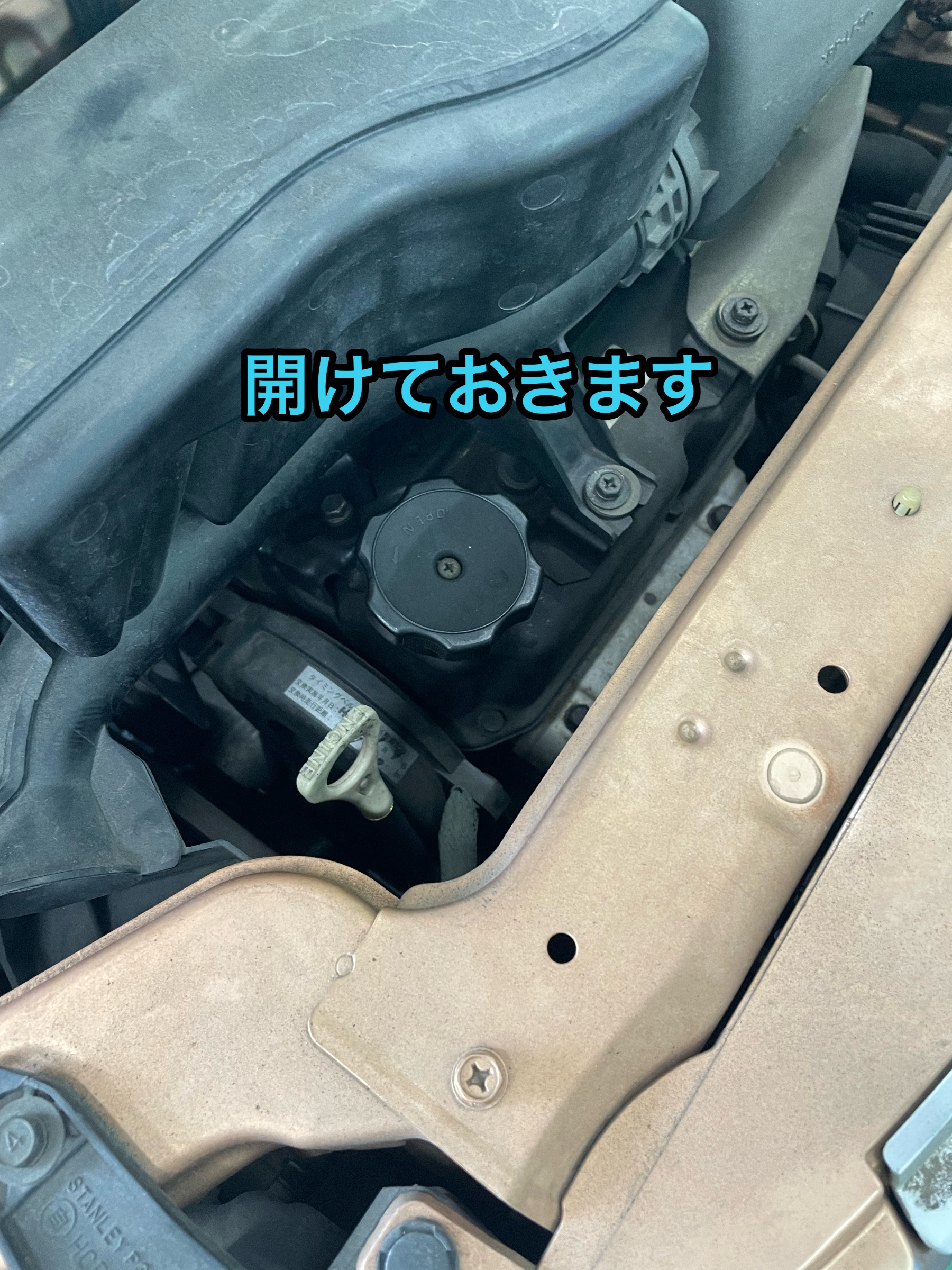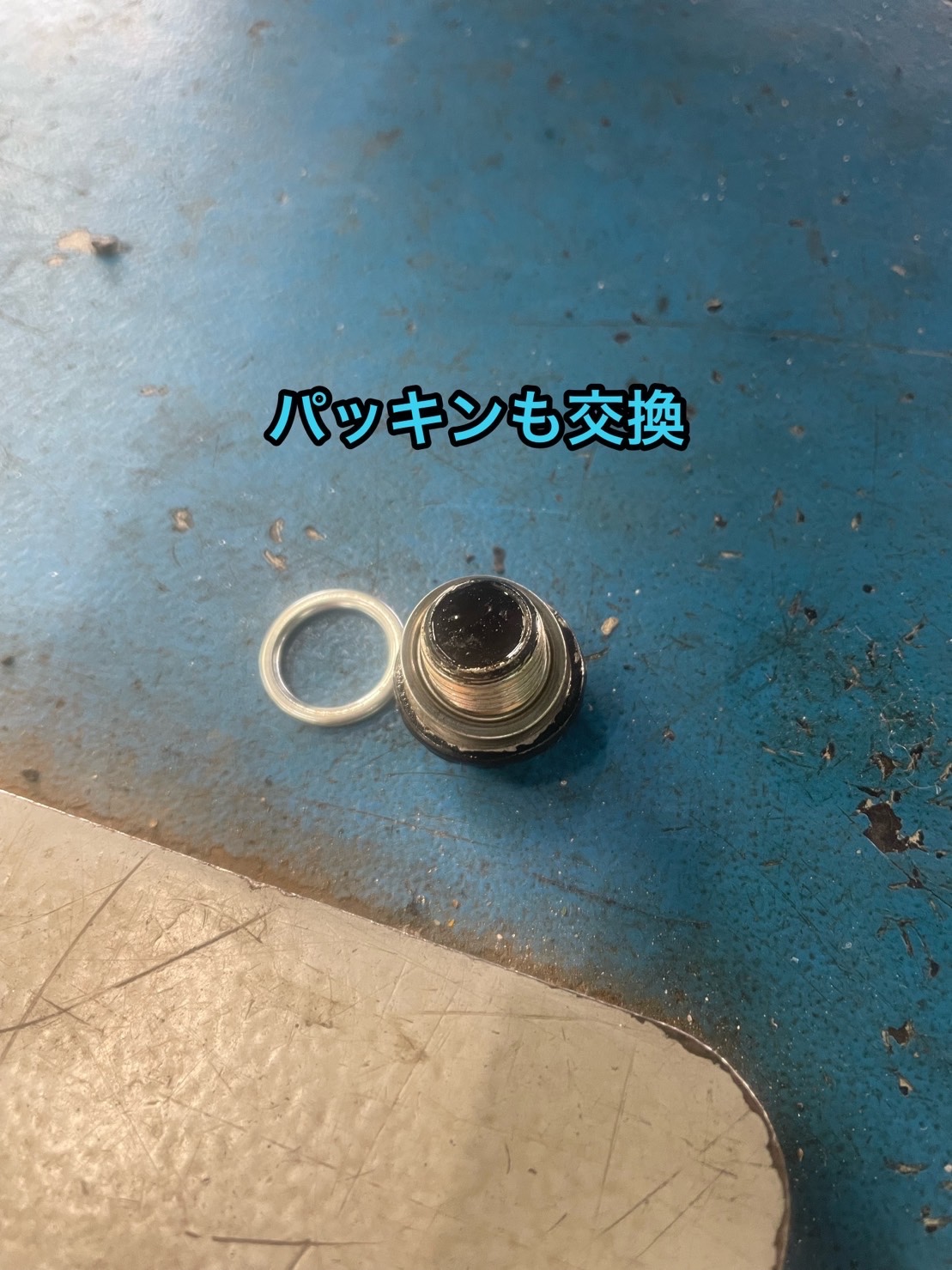 まずはオイルを抜く前に、スムーズにオイルが出ていく様にキャップとオイルゲージを緩めておきます。