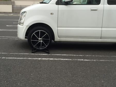 タイヤを外すことなくホイルをお車の前に置き、ホイルが実際に装着された状態に近い形で