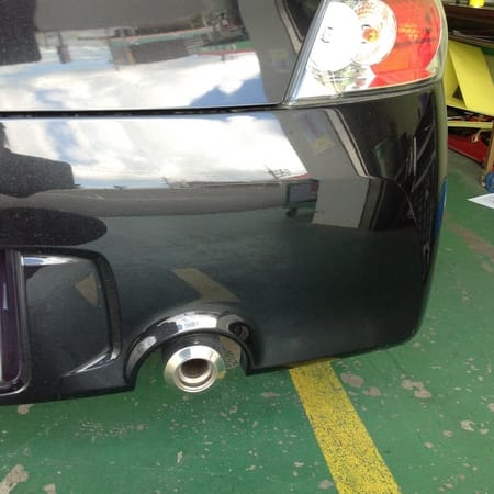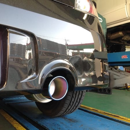 マフラーはフジツボのブレイズ!純正マフラーを切断加工し装着しました。テールエンドのグラデーション加工が車のリアに迫力がでます!大切にしていただきたいので、マフラーの防錆コーティングもさせて頂きました。