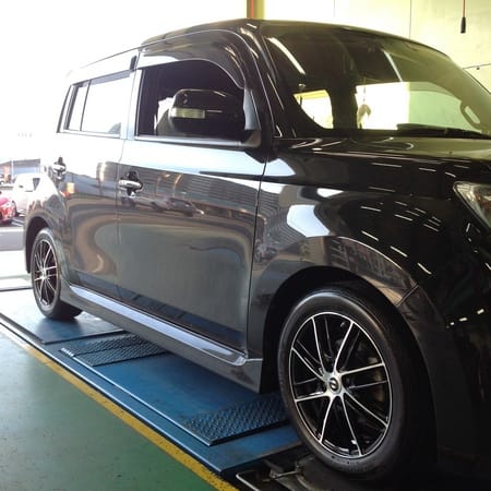 本日はbBにマフラー・ダウンサス・ホイール交換をさせて頂きました。