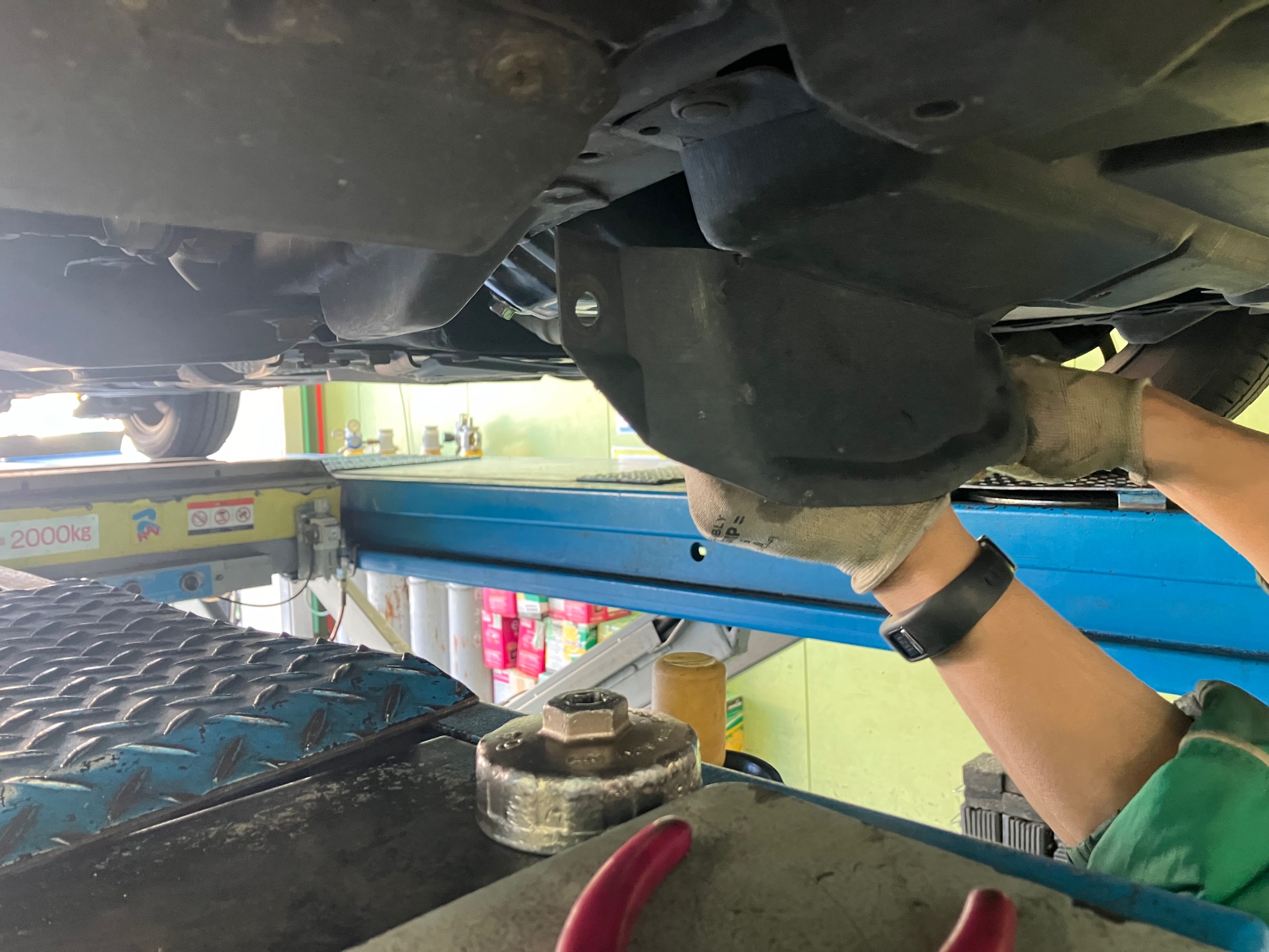 まずはドレンからオイルを抜いていきますよ〜