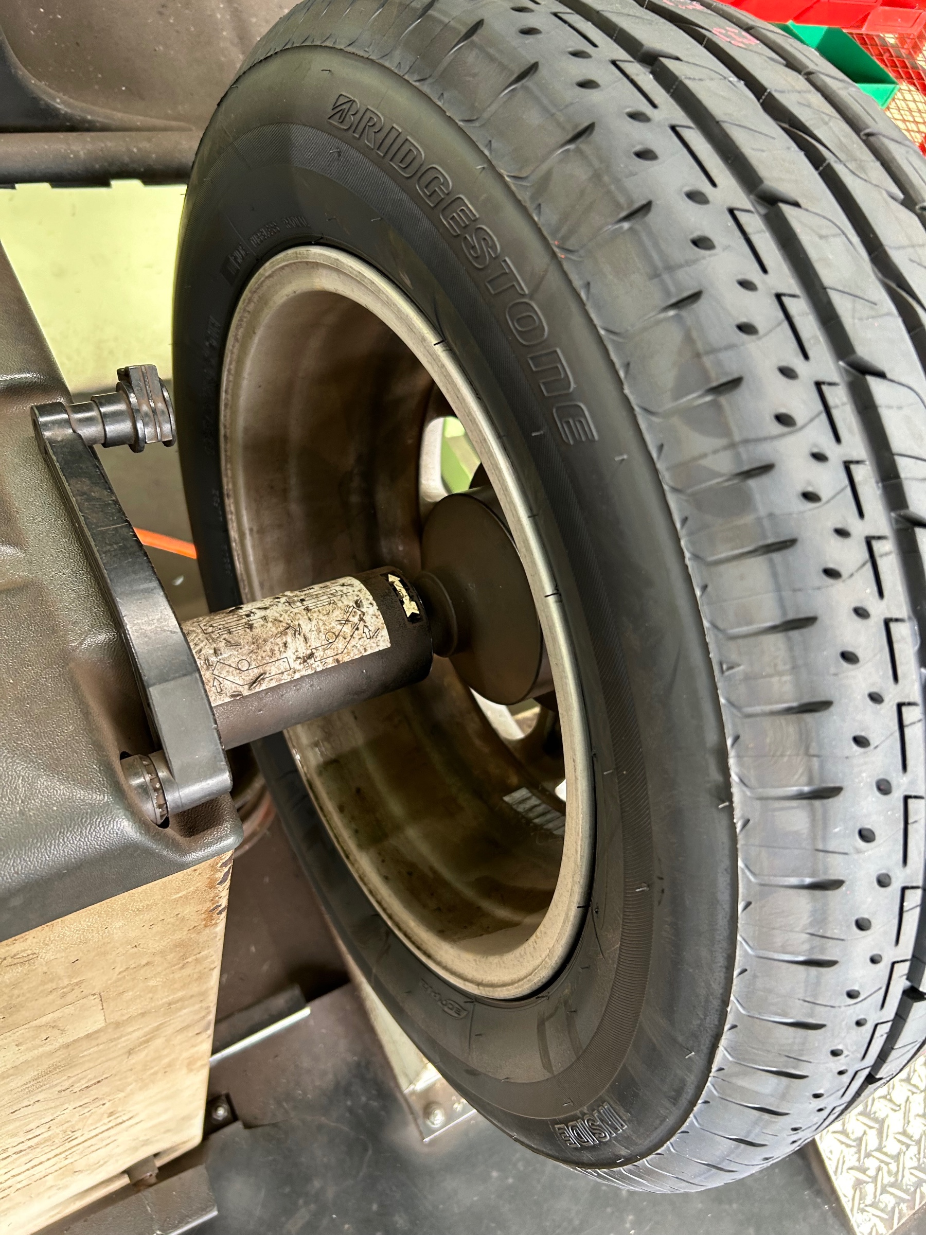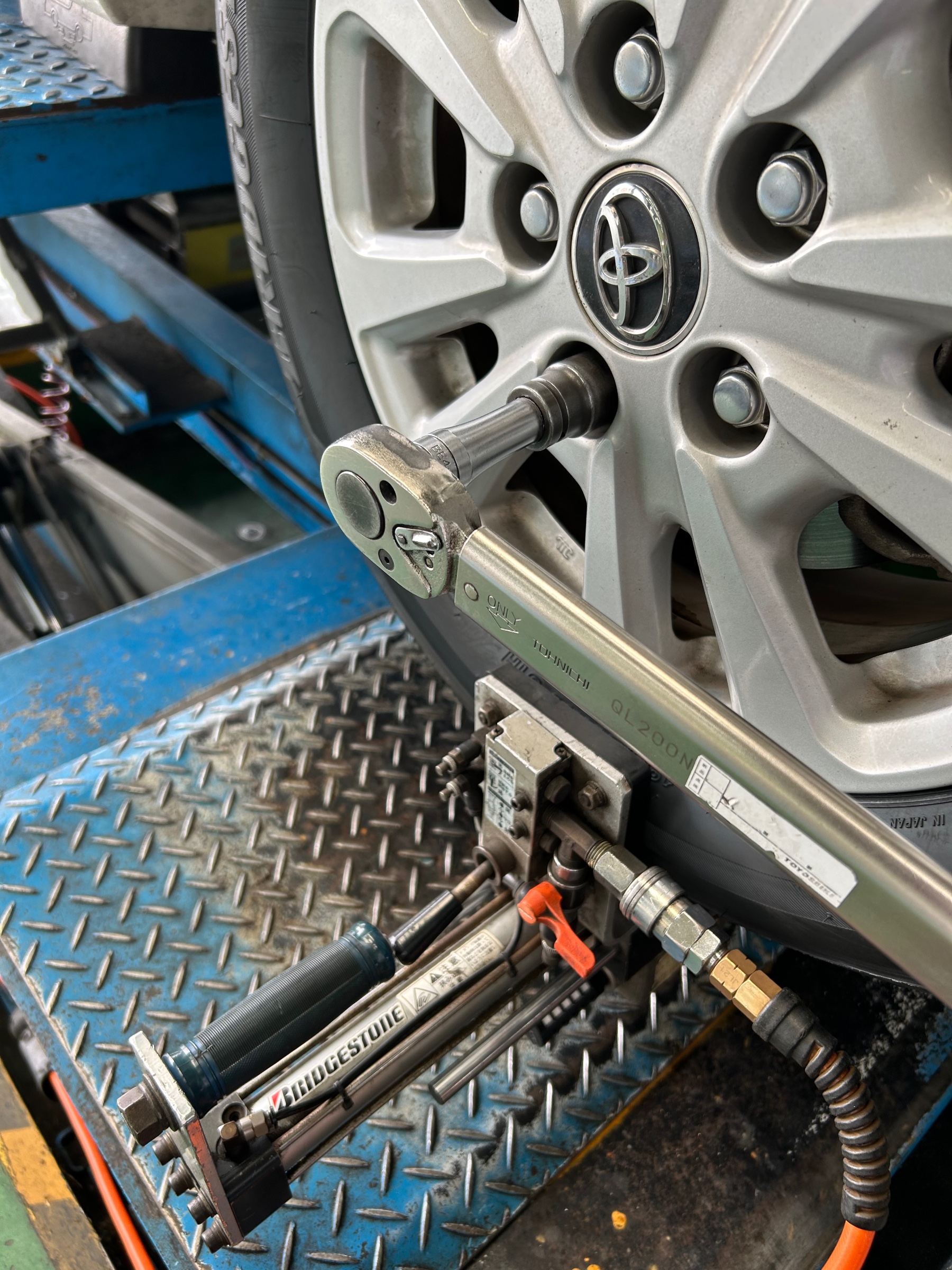 タイヤを取り付ける際はセンターフィットで、トルクレンチを使っていきます