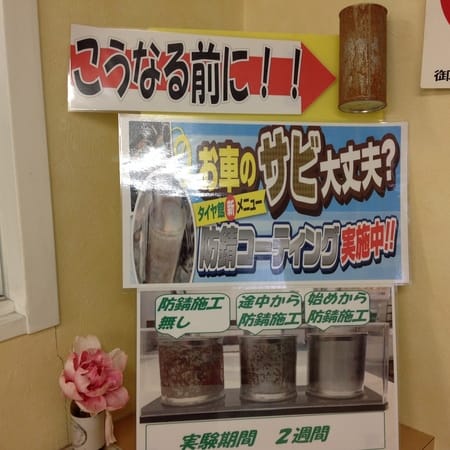 タイヤ館ではお車のサビの進行を遅らせる防錆コーティングをやっております。