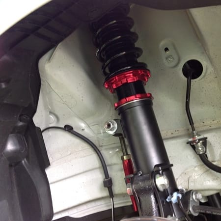 取付けたのはBLITZ DAMPER ZZR スラリと伸びた細いスポークからチラリと見える魅惑の赤色ダンパー、なかなかセクシーになりました!試乗した感じでもしなやかな乗り心地と足回りのしっかり感が出てますので是非お勧めです!もちろん、アライメントもとりました!