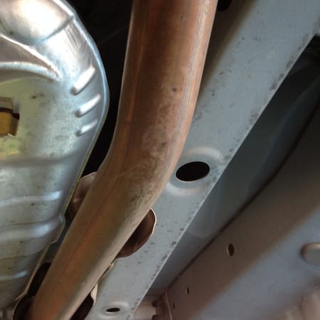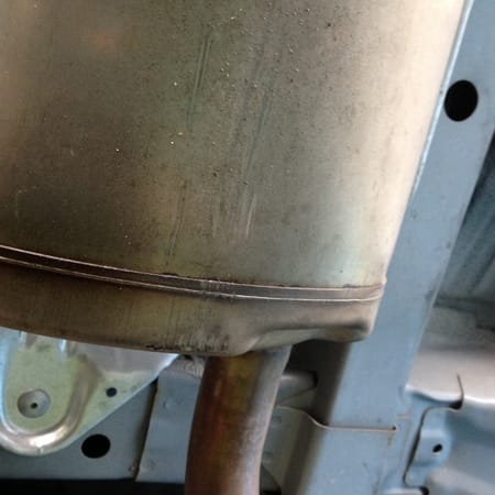 今日、オイル交換したついでにどこを擦ったか診てみると、マフラーに擦りあとがついていました・・・ほっといたら、錆が発生するので、とりあえず防錆コーティングをしました。