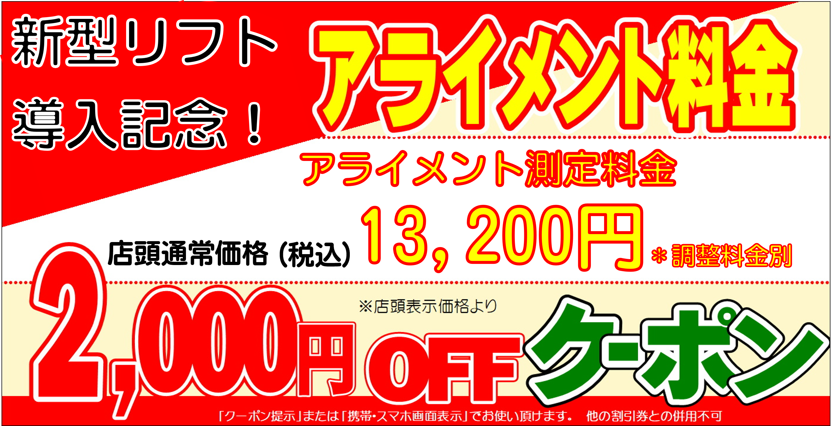 アライメント測定基本料金、13200円(税込)が