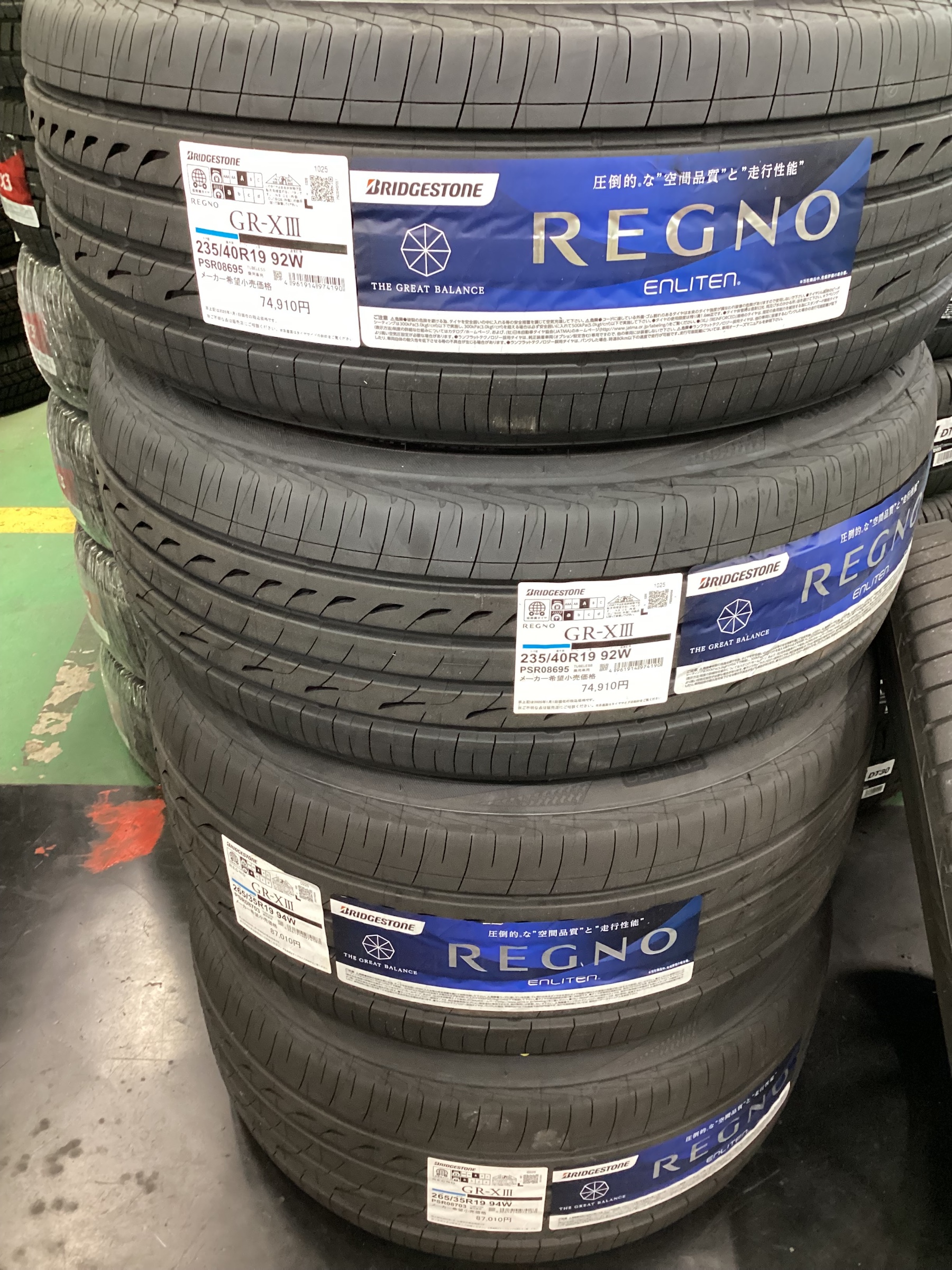 タイヤの銘柄はブリヂストン レグノ GR-XIIIで、サイズは235/40R19です。