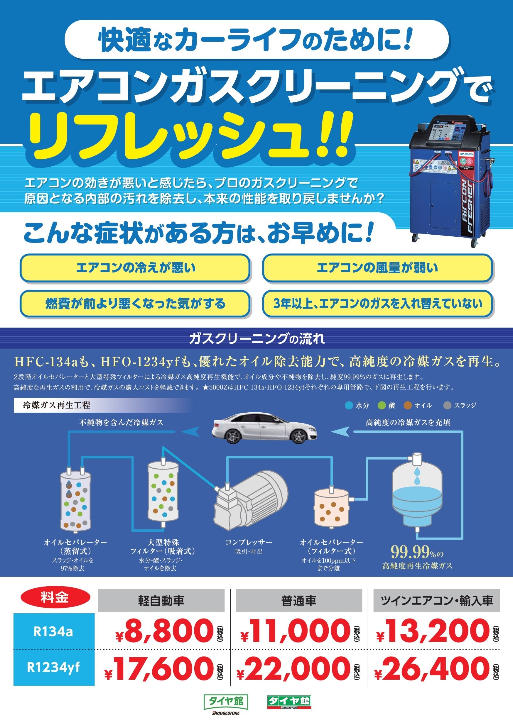 倉敷でエアコンガスのメンテナンスをするならタイヤ館倉敷大島店へ!! 連休に向けて準備はお済みですか??